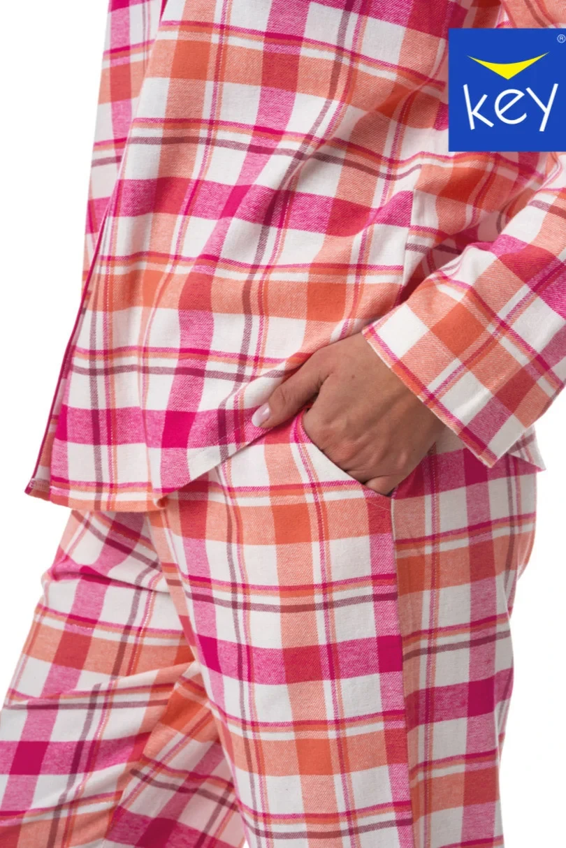 Klasické flanelové pyžamo.Hřejivá a na dotek příjemná flanelová tkanina.Košile bez knoflíků s klasickým límečkem.Kalhoty s měkkou gumou v pase a rovnými nohavicemi.