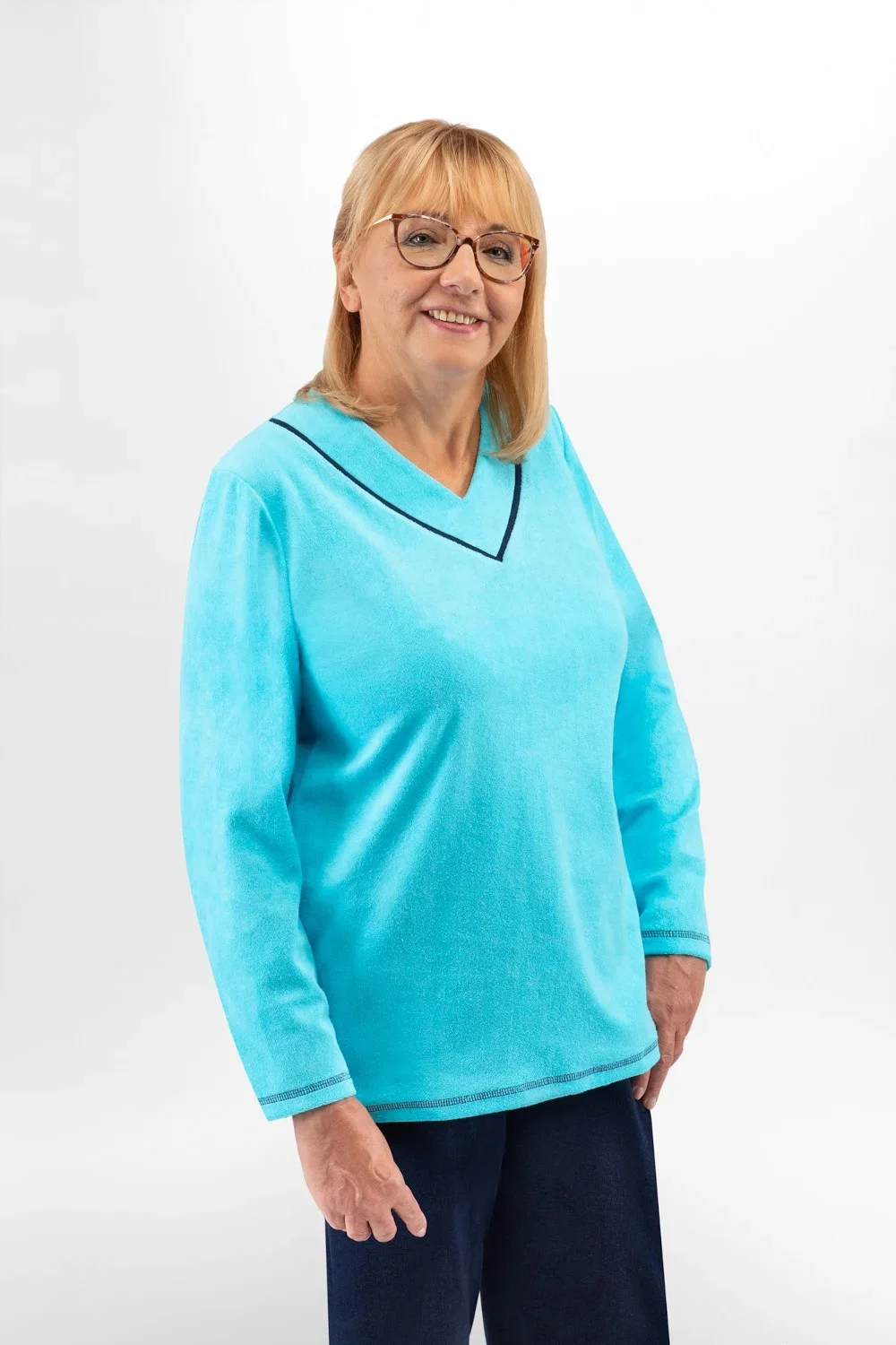 Piżama damska KASIA II 266 to komfortowy komplet stworzony z myślą o kobietach ceniących praktyczne rozwiązania i naturalne materiały. Uszyta z 100% bawełny, jest miękka, przewiewna i przyjazna dla skóry. Bluzka z rękawem 3/4, okrągłym dekoltem i dwiema kieszeniami jest w pełni rozpinana, co sprawia, że świetnie sprawdza się również dla mam karmiących. Spodnie o długości 7/8 z elastyczną gumką w pasie zapewniają wygodne dopasowanie. Polski producent gwarantuje wysoką jakość wykonania.