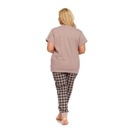 Dámské pyžamo 4430 Doctor Nap - vyrobené z velmi kvalitní a příjemné bavlny - béžové tričko s krátkými rukávy - zapínání na patentky - dlouhé kárované kalhoty zakončené stahujícím lemem - certifikát OEKO-TEX Standard 100Materiálové složení: 100% bavlna