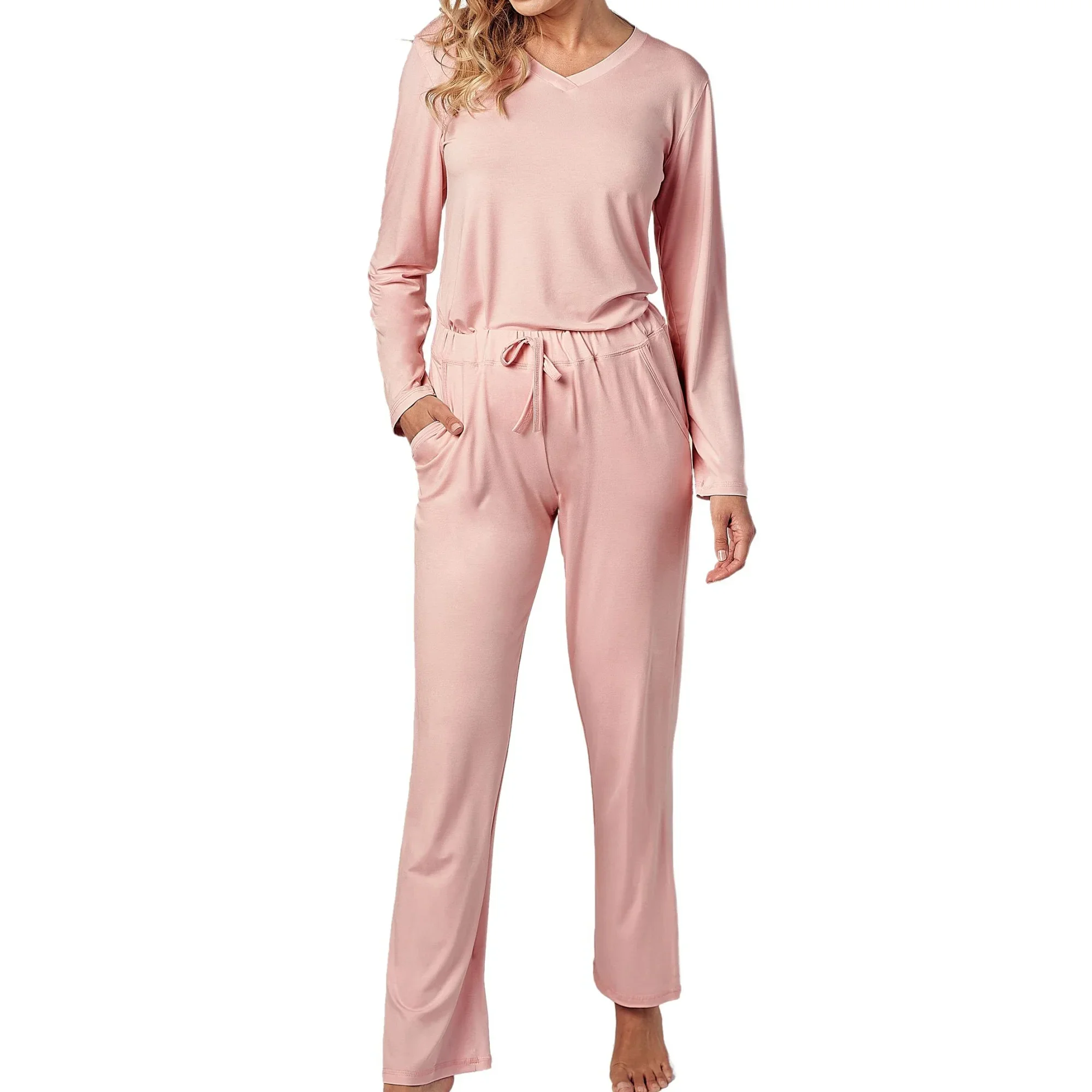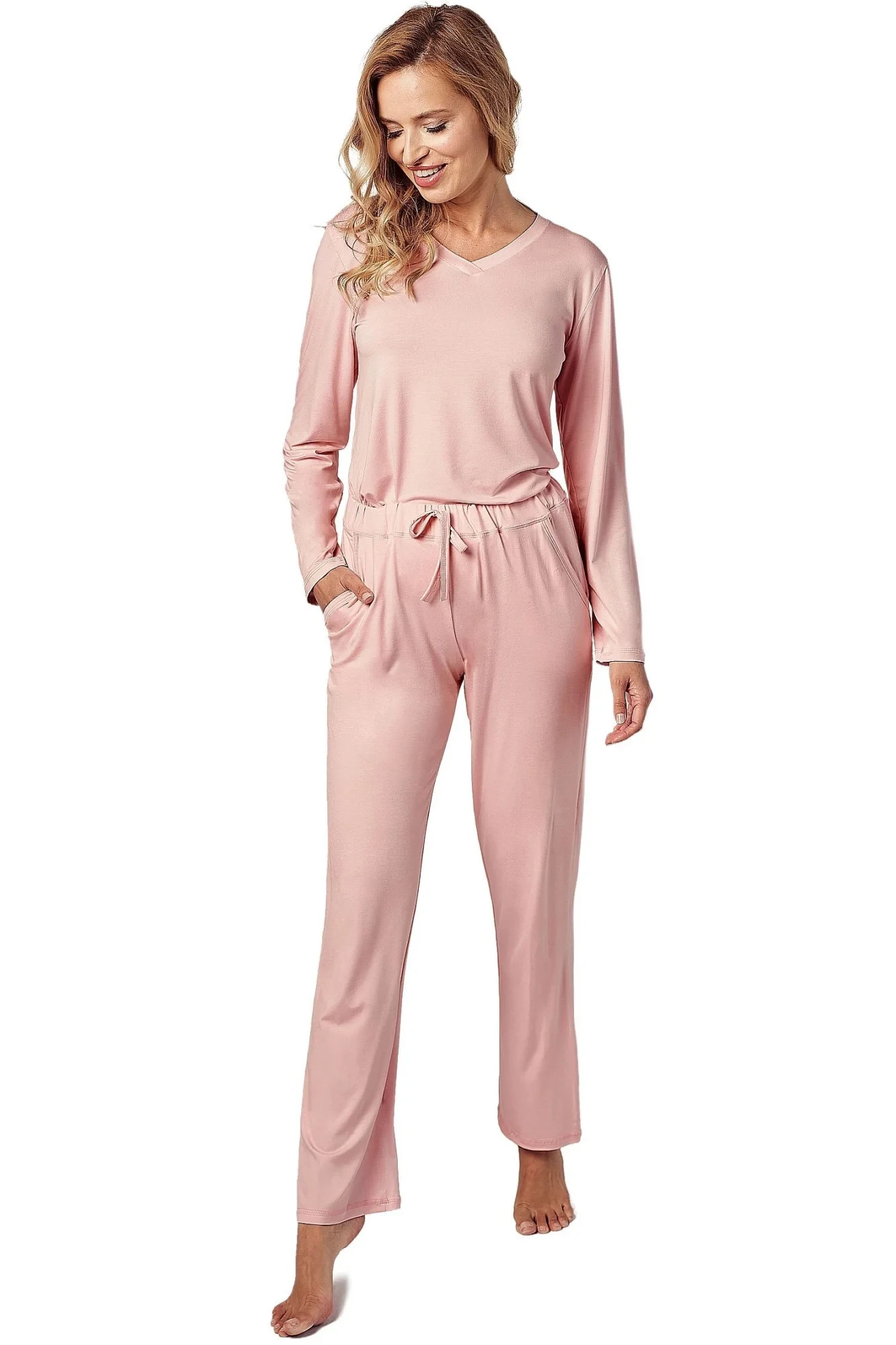 Dámské pyžamo 3053 River TARO - vyrobené z vysoce kvalitní a měkké viskózy - tričko je růžové barvy s krátkými rukávy - dlouhé růžové kalhoty - pohodlná guma v pase