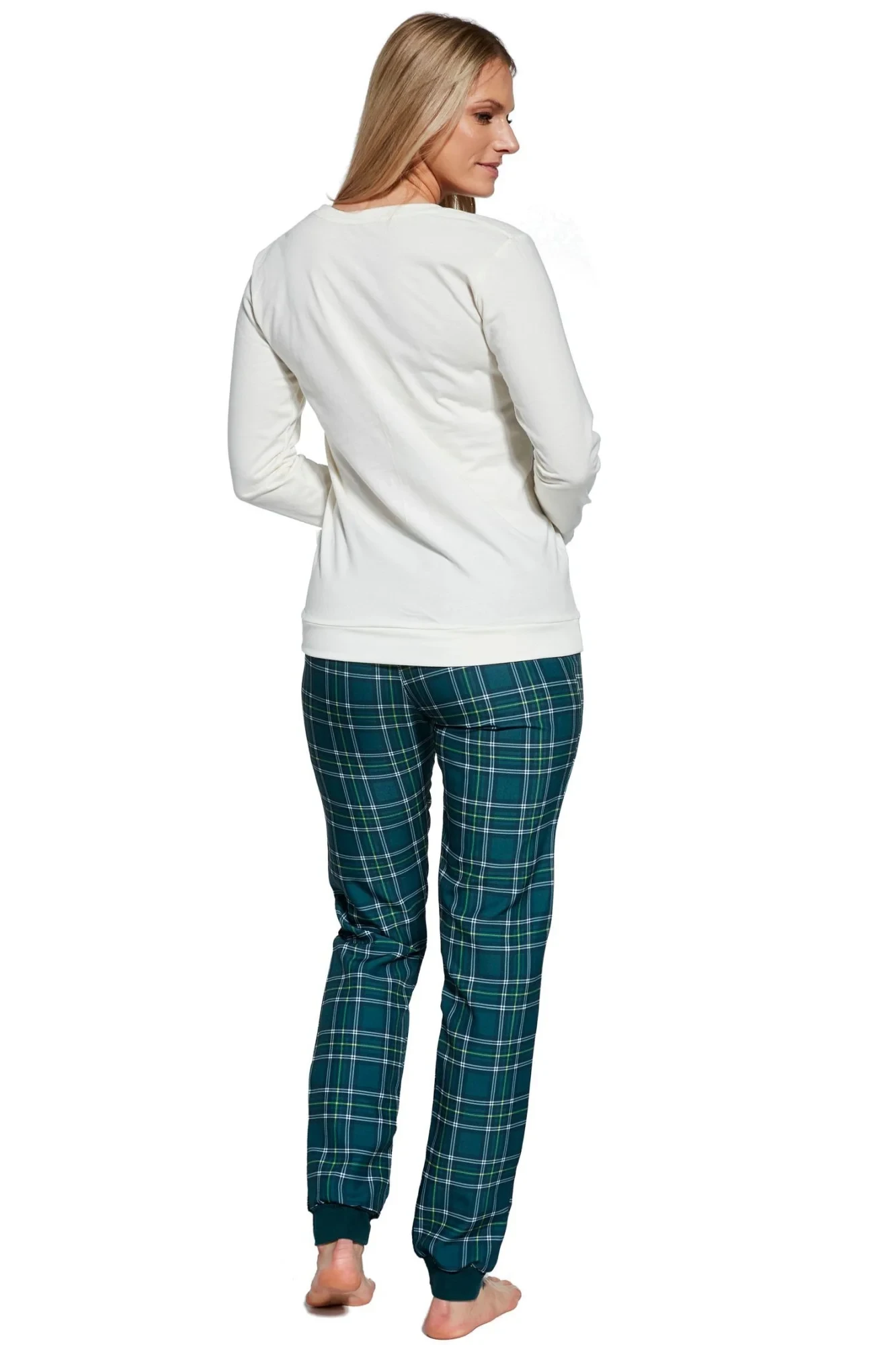 Dámské pyžamo 671/347 Cookie CORNETTE - z vysoce jakostní bavlny - krémové tričko s dlouhými rukávy - na přední straně barevný potisk - dlouhé kárované kalhoty - pyžamo je vhodné i na denní nošeníMateriálové složení: 100% bavlna
