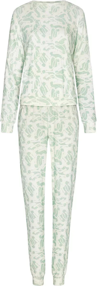 Pohodlné a pružné pyžamo z měkkého úpletu ve světlých barvách; příjemný na chladné večery na podzim i na jaře.