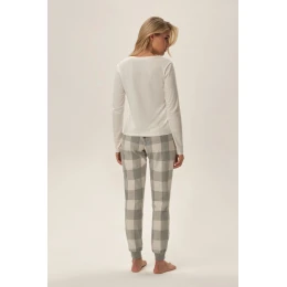 Dámské pyžamo 41895 Farris HENDERSON - z vysoce jakostní bavlny - béžové tričko s dlouhými rukávy - výstřih se zapínáním na knoflíky - dlouhé kárované kalhoty zakončené manžetami - široký elastický pas - materiálové složení trička: 80% bavlna + 20% viskóza