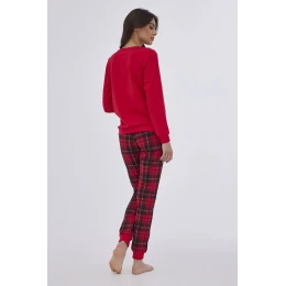 Dámské pyžamo 671/371 Celebrate CORNETTE - z vysoce jakostní bavlny - červené tričko s dlouhými rukávy - zdobené potiskem na přední straně - dlouhé kárované kalhoty - vánoční kolekce