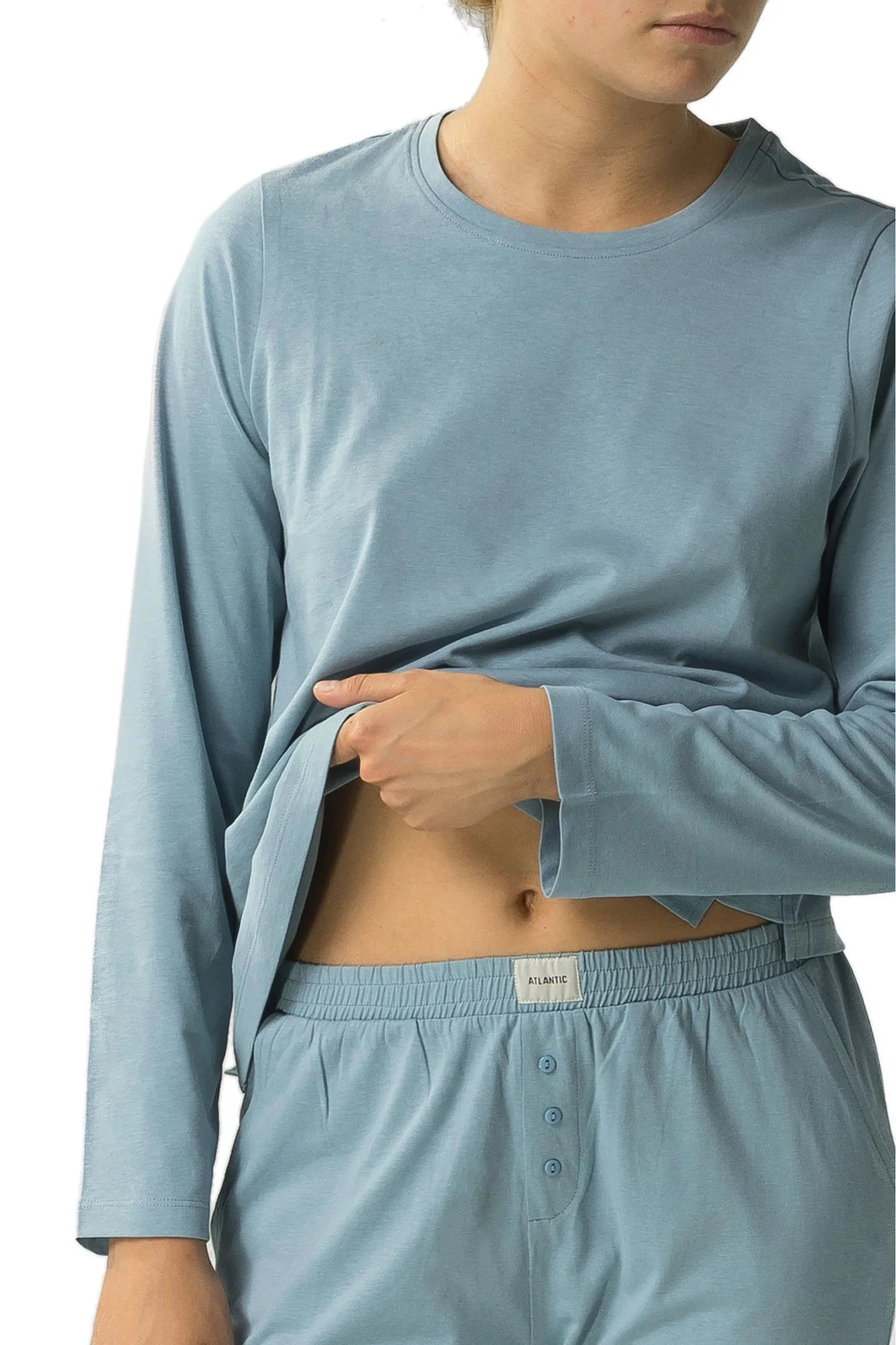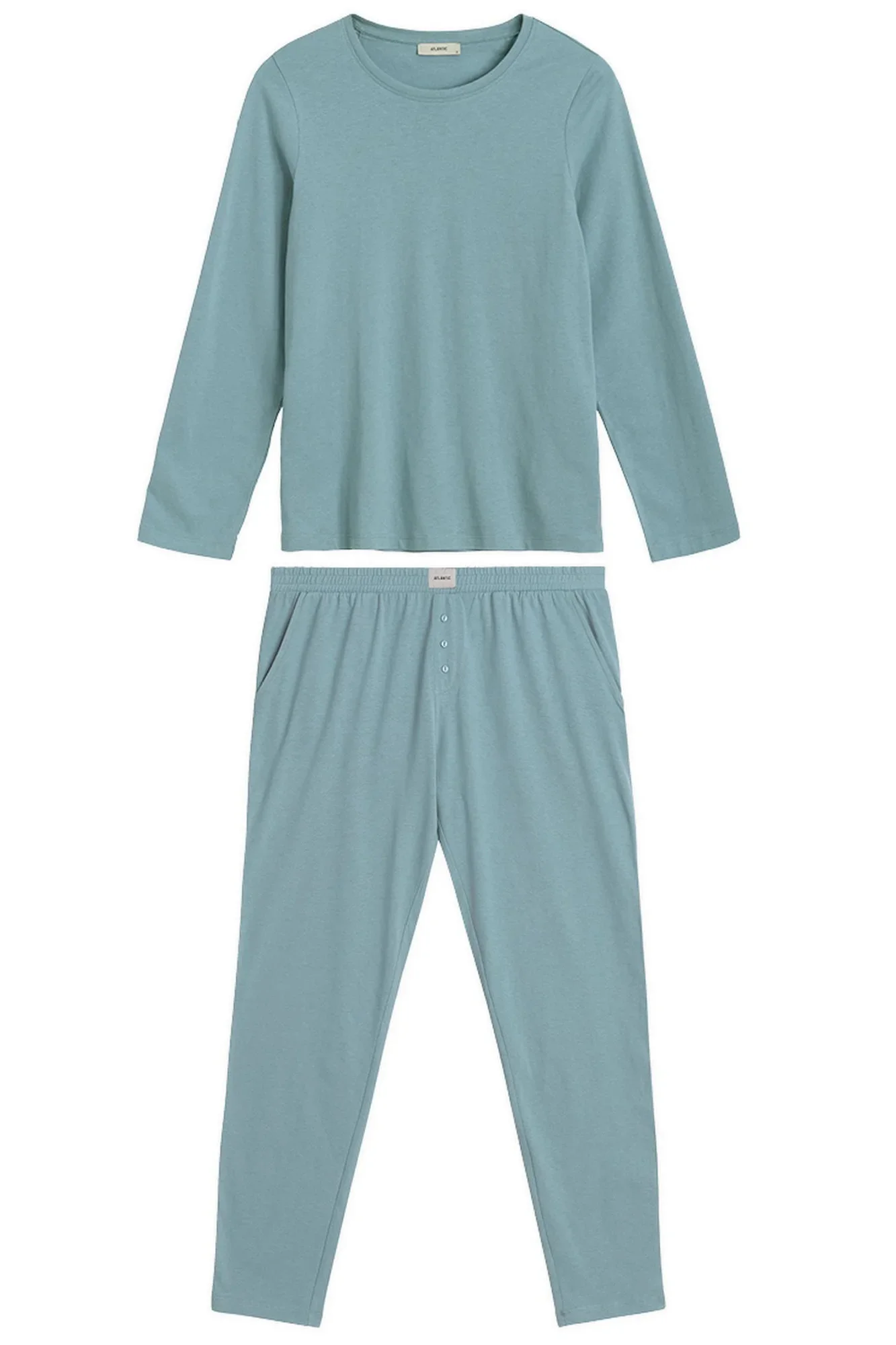 Dámské pyžamo 479 turquise Atlantic - z vysoce jakostní bavlny - modré tričko s dlouhými rukávy - dlouhé kalhoty s kapsami - neodnímatelné knoflíky - nastavitelná šňůrka v pase