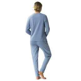 Dámské pyžamo 479 blue Atlantic - z vysoce jakostní bavlny - světle modré tričko s dlouhými rukávy - dlouhé kalhoty s kapsami - neodnímatelné knoflíky - nastavitelná šňůrka v pase