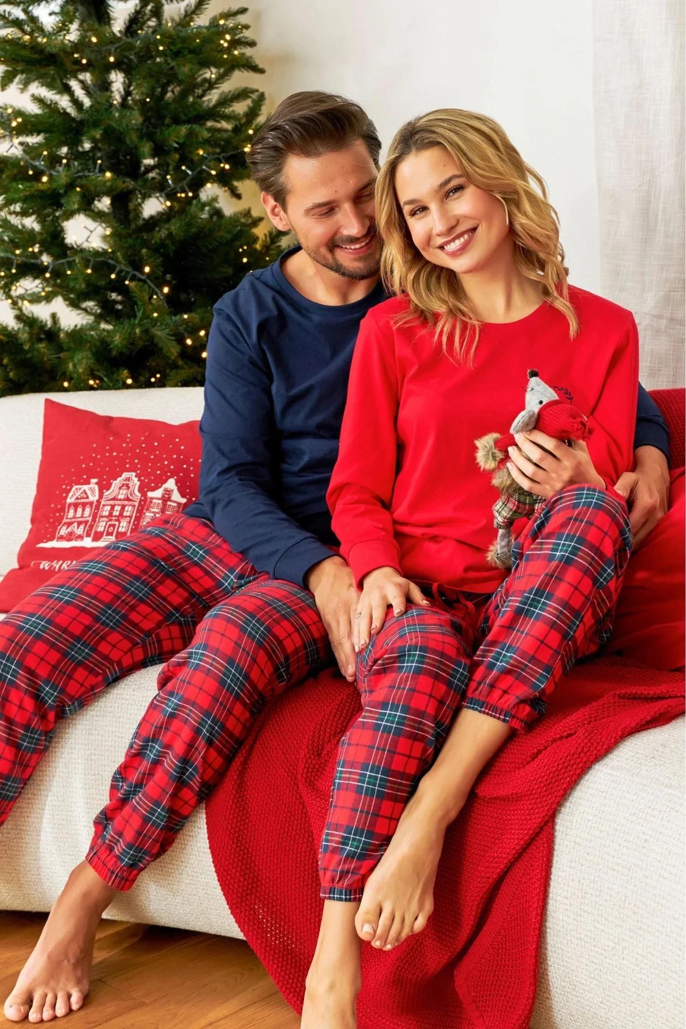 Dámské pyžamo 7127 Doctornap - z vysoce jakostní bavlny - červené tričko s dlouhými rukávy - na přední straně zdobené potiskem - dlouhé kostkované kalhoty s kapsami - rukávy a nohavice zakončené stahovacím lemem - certifikát OEKO-TEX Standard 100