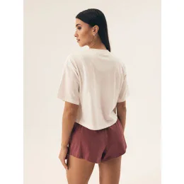 Dámské pyžamo 42770 Nimes HENDERSON - z vysoce jakostní bavlny - béžové tričko s krátkými rukávy - zdobené nápisem na přední straně - šortky cihlové barvy - široký elastický pás se stahovací šňůrkou