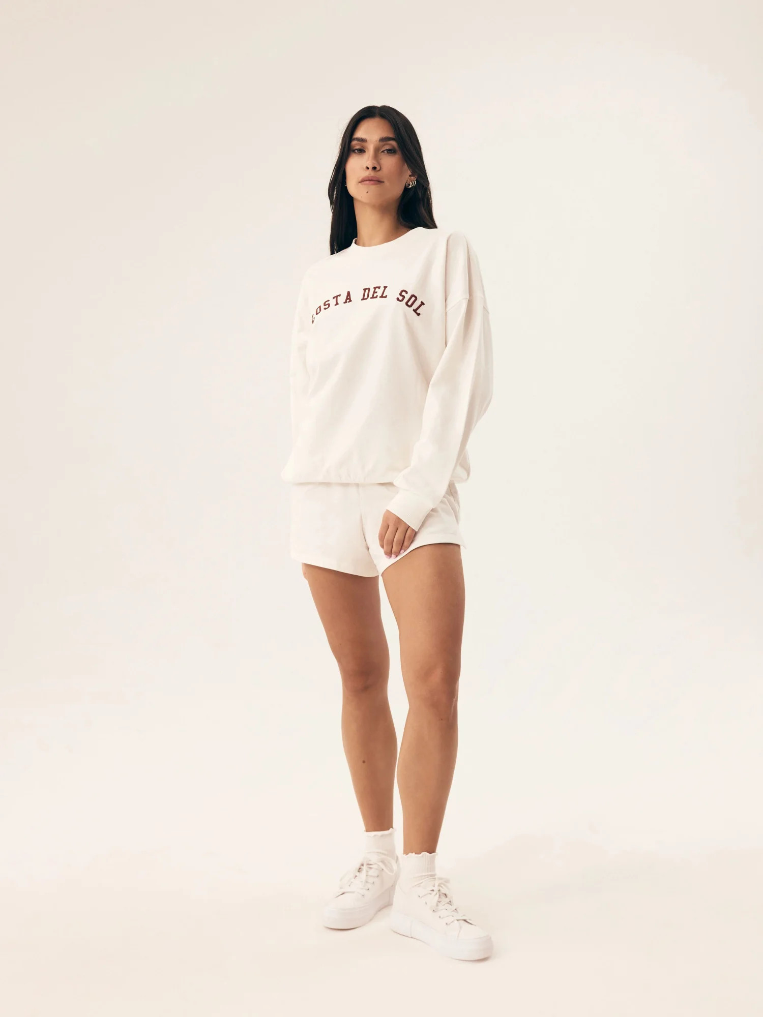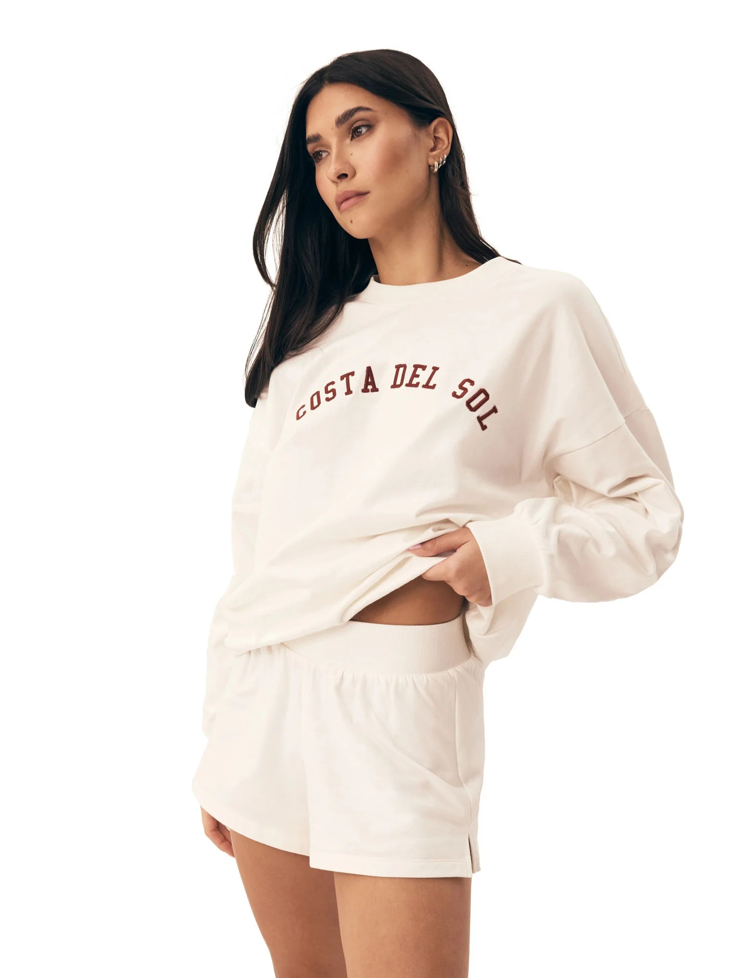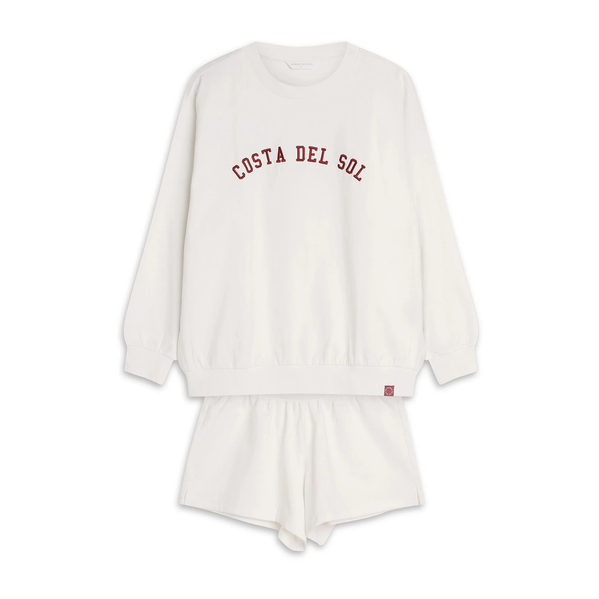 Dámské pyžamo 42678 Nimes HENDERSON - z vysoce jakostní bavlny - béžové tričko s dlouhými rukávy - rukávy zakončené manžetami - zdobené nápisem na přední straně - šortky béžové barvy - široký elastický pás