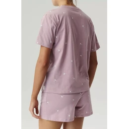 Dámské pyžamo 491 lavender Atlantic - z vysoce jakostní bavlny - fialové tričko s krátkými rukávy - šortky s kapsami - s potiskem - zavazování v pase na šňůrku - prodyšná látka, která dobře odvádí vlhkost - střih zajišťující pohodlí a volnost pohybu - kvalitní bavlna příjemné na dotek a šetrná k pokožce