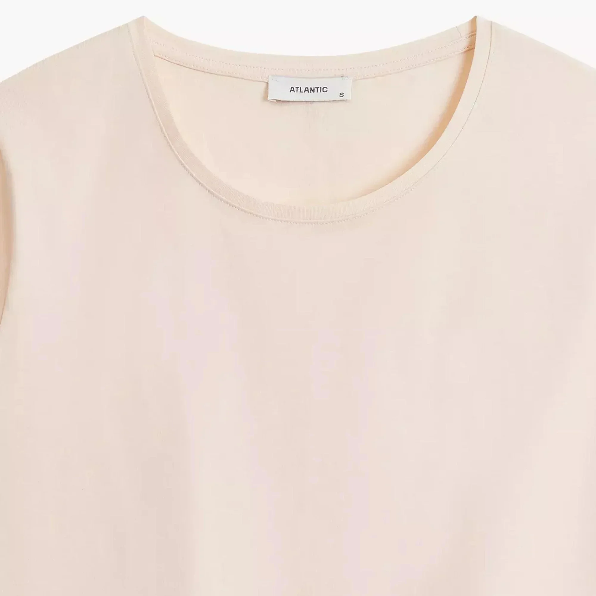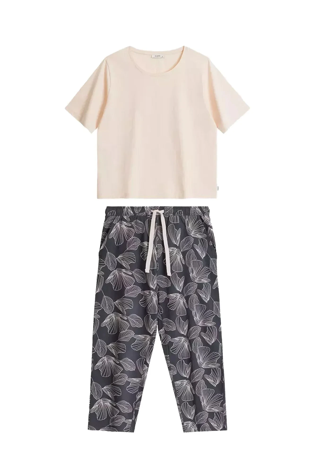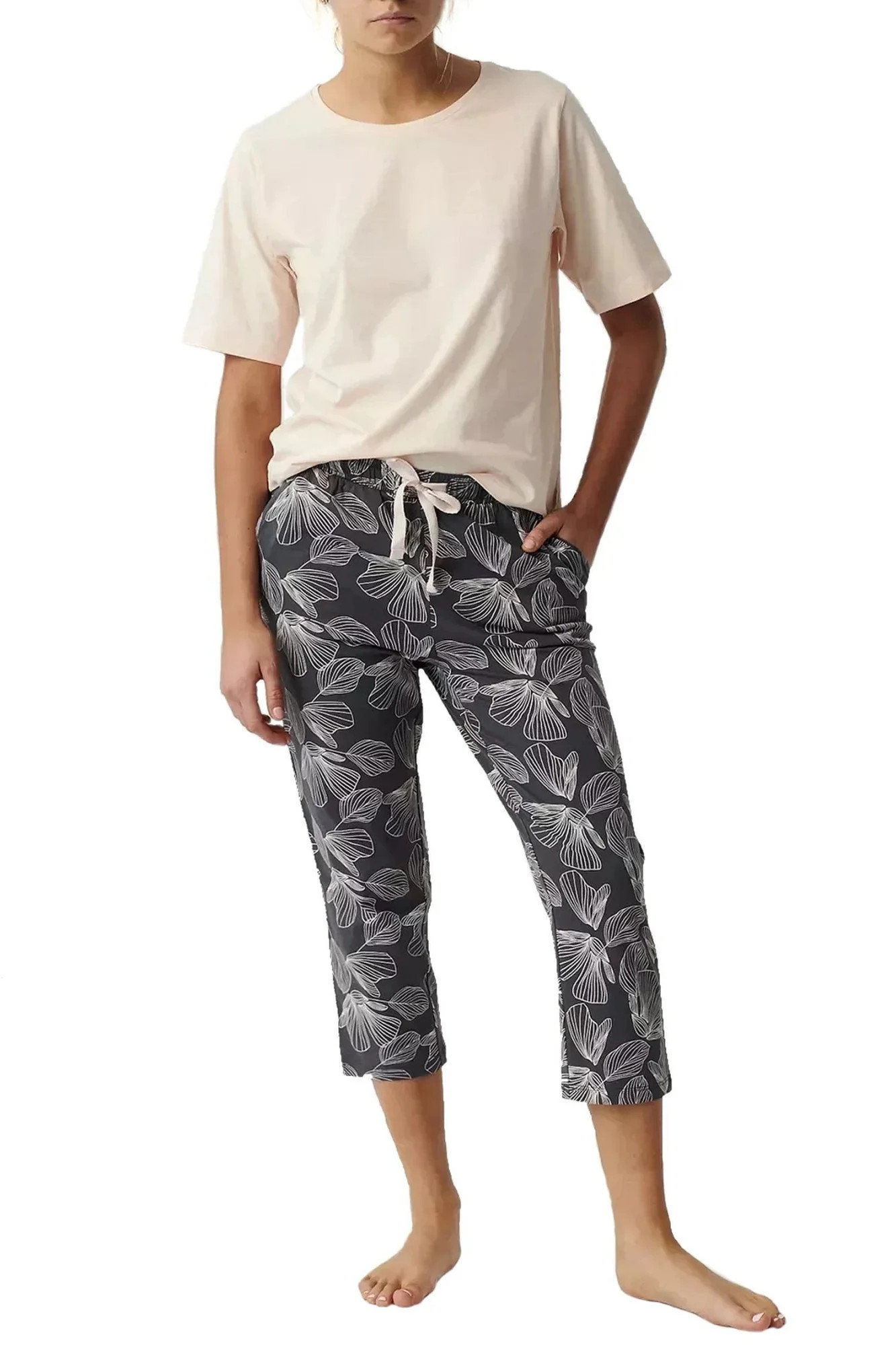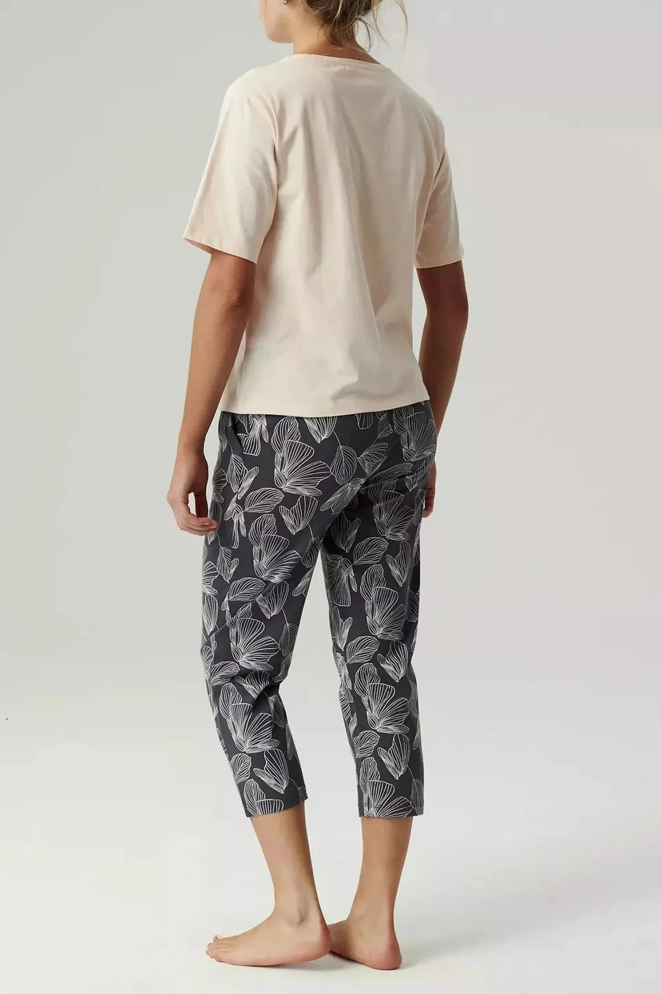 Dámské pyžamo 488 peach Atlantic - z vysoce jakostní bavlny - starorůžové tričko s krátkými rukávy - kulatý výstřih - vzorované kalhoty s bočními kapsami a motýlkem v pase - kvalitní bavlněný úplet šetrný k pokožce - kombinace stylu, funkčnosti a pohodlí