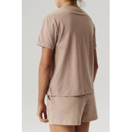 Dámské pyžamo 487 beige Atlantic - z vysoce jakostní bavlny - béžové tričko s krátkými rukávy - kraťasy béžové barvy s kapsami - netlakový elastický pas s logem ATLANTIC - plná volnost pohybu a pohodlí při nošení