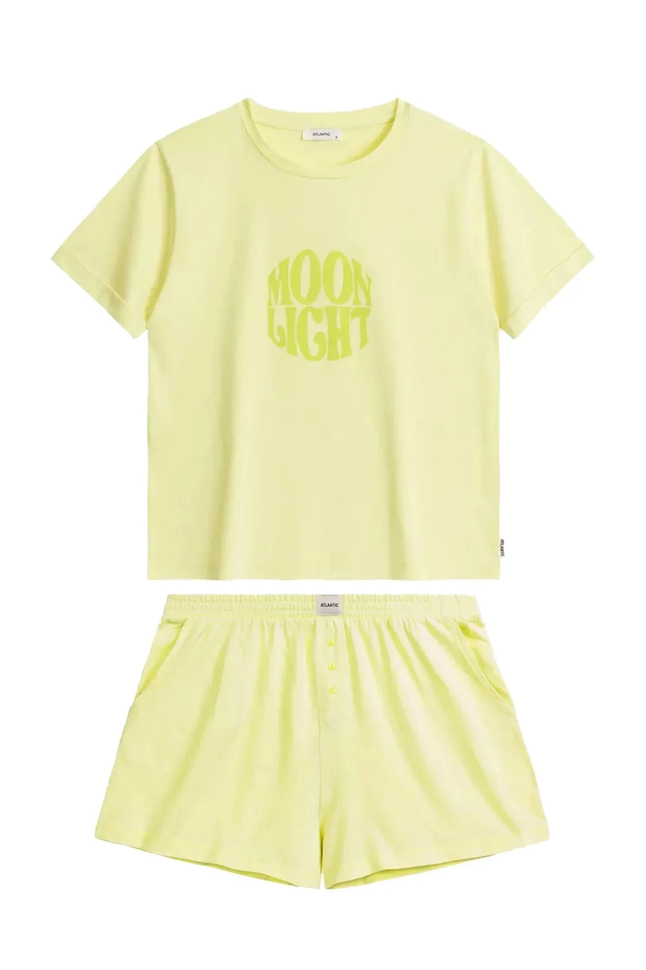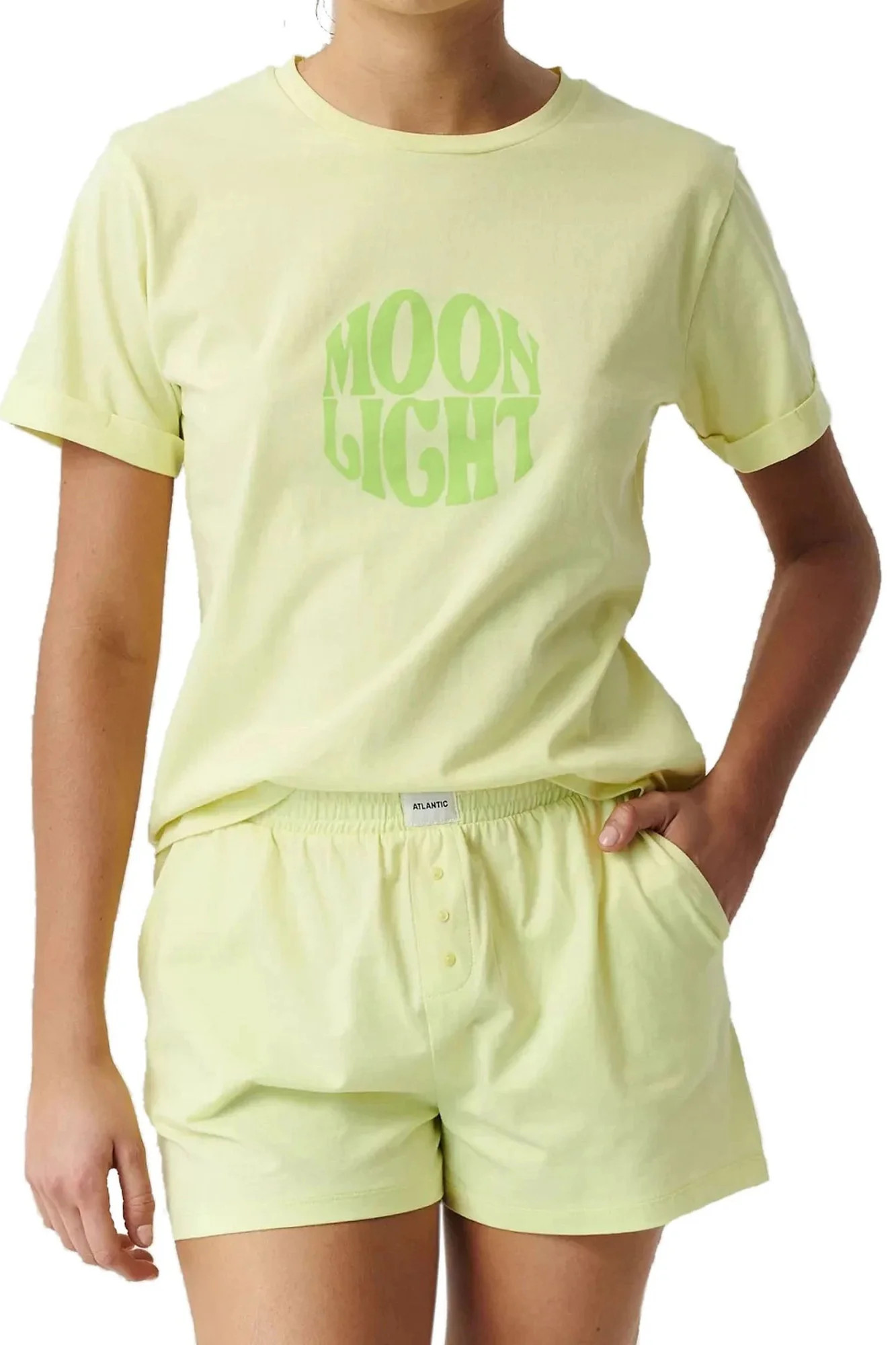 Dámské pyžamo 487 limeta Atlantic - z vysoce jakostní bavlny - zelené tričko s krátkými rukávy - kraťasy zelené barvy s kapsami - netlakový elastický pas s logem ATLANTIC - plná volnost pohybu a pohodlí při nošení
