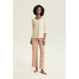 Piżama damska DENISE 43671 z kolekcji SS26 to doskonały wybór dla kobiet ceniących komfort, naturalne materiały i ponadczasowy styl. Model z długimi spodniami zapewnia wygodę oraz pełną swobodę ruchów, sprawdzając się idealnie zarówno podczas snu, jak i domowego wypoczynku. Wysokiej jakości tkanina oparta na naturalnych włóknach – bawełnie i wiskozie – gwarantuje miękkość, przewiewność oraz przyjemne uczucie na skórze. To idealna piżama na każdą porę roku.