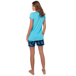 Dámské pyžamo Paleros turquise ITALIAN FASHION - vyrobené z velmi kvalitní a příjemné bavlny - tyrkysové tričko s krátkými rukávy - s potiskem na přední straně - vzorované kraťasy - s kapsami