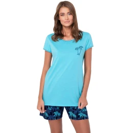 Dámské pyžamo Paleros turquise ITALIAN FASHION - vyrobené z velmi kvalitní a příjemné bavlny - tyrkysové tričko s krátkými rukávy - s potiskem na přední straně - vzorované kraťasy - s kapsami