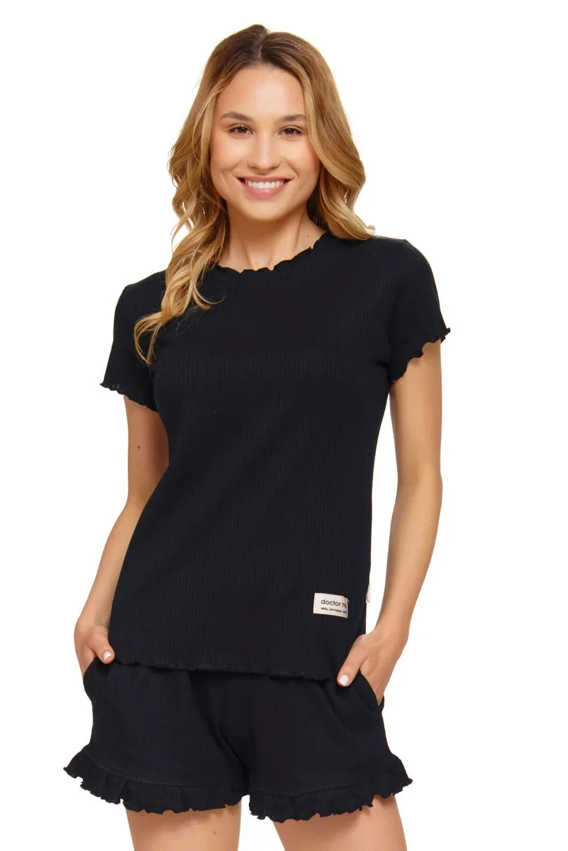 Dámské pyžamo PM.4315 DR NAP je kombinací klasiky a jemné elegance. Je vyrobeno z kvalitní žebrované bavlny a poskytuje výjimečné pohodlí a volnost pohybu. Jemná síťovina dodává soupravě šarm, zatímco praktické kapsy ji činí funkční nejen pro spánek, ale i pro odpočinek během dne. Tričko a šortky tvoří harmonický komplet, ideální pro každé roční období. Pyžamo je dokonale ušité s důrazem na každý detail a je synonymem pohodlí a stylu.