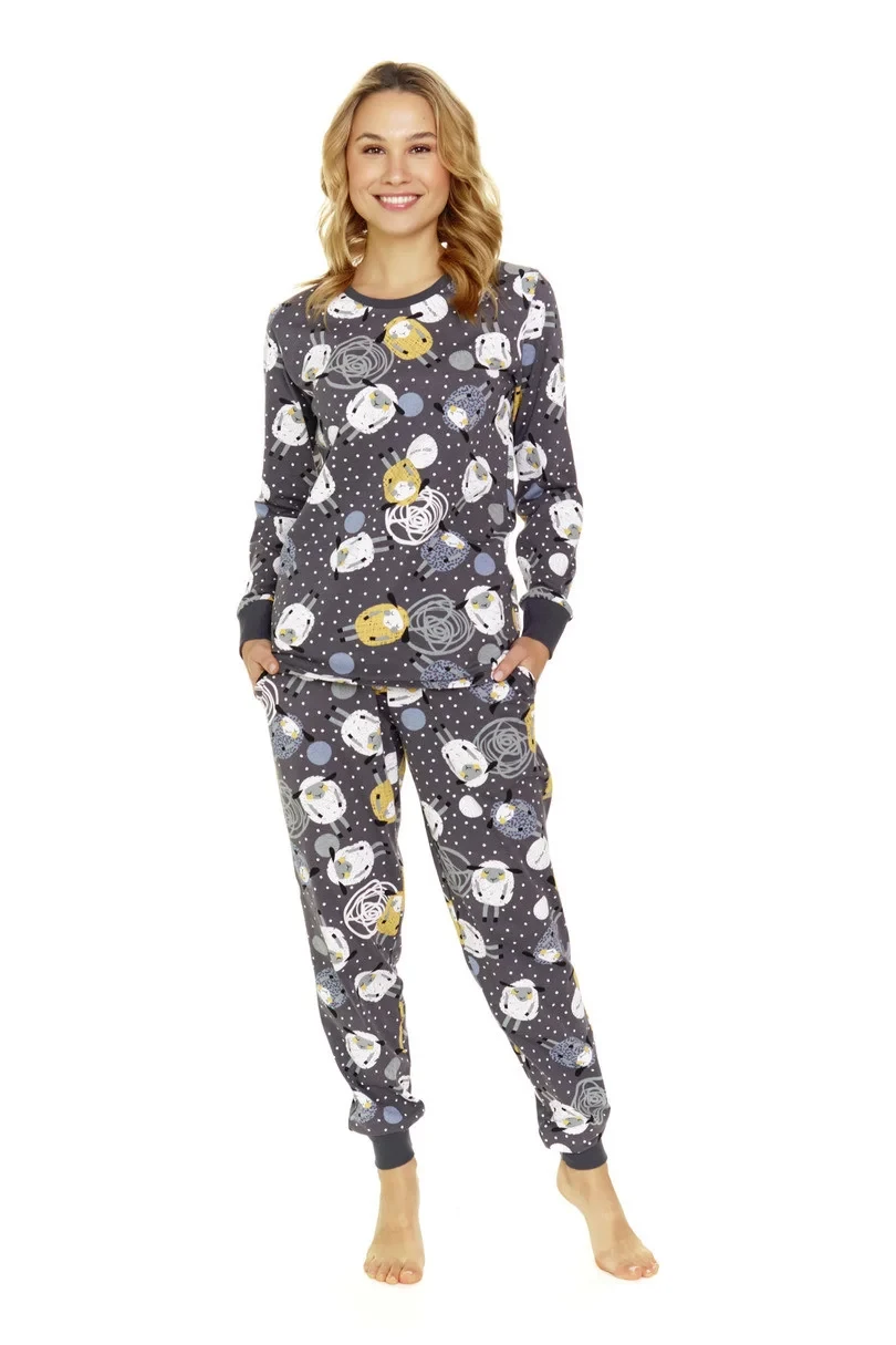 Dámské pyžamo z vysoce kvalitní měkké bavlny. Dlouhé vzorované tričko. Dlouhé vzorované kalhoty s kapsami. Výstřih, manžety a nohavice jsou zakončeny pohodlným lemem.