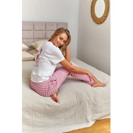 Dámské pyžamo PM.7456 značky DR NAP je stylový a pohodlný návrh vytvořený pro ženy, které ocení pohodlí, jemnou ženskost a originální detaily v domácím stylu. Model bude ideální jak při spánku, tak jako módní domácí oblečení pro klidná rána a večerní relaxaci.