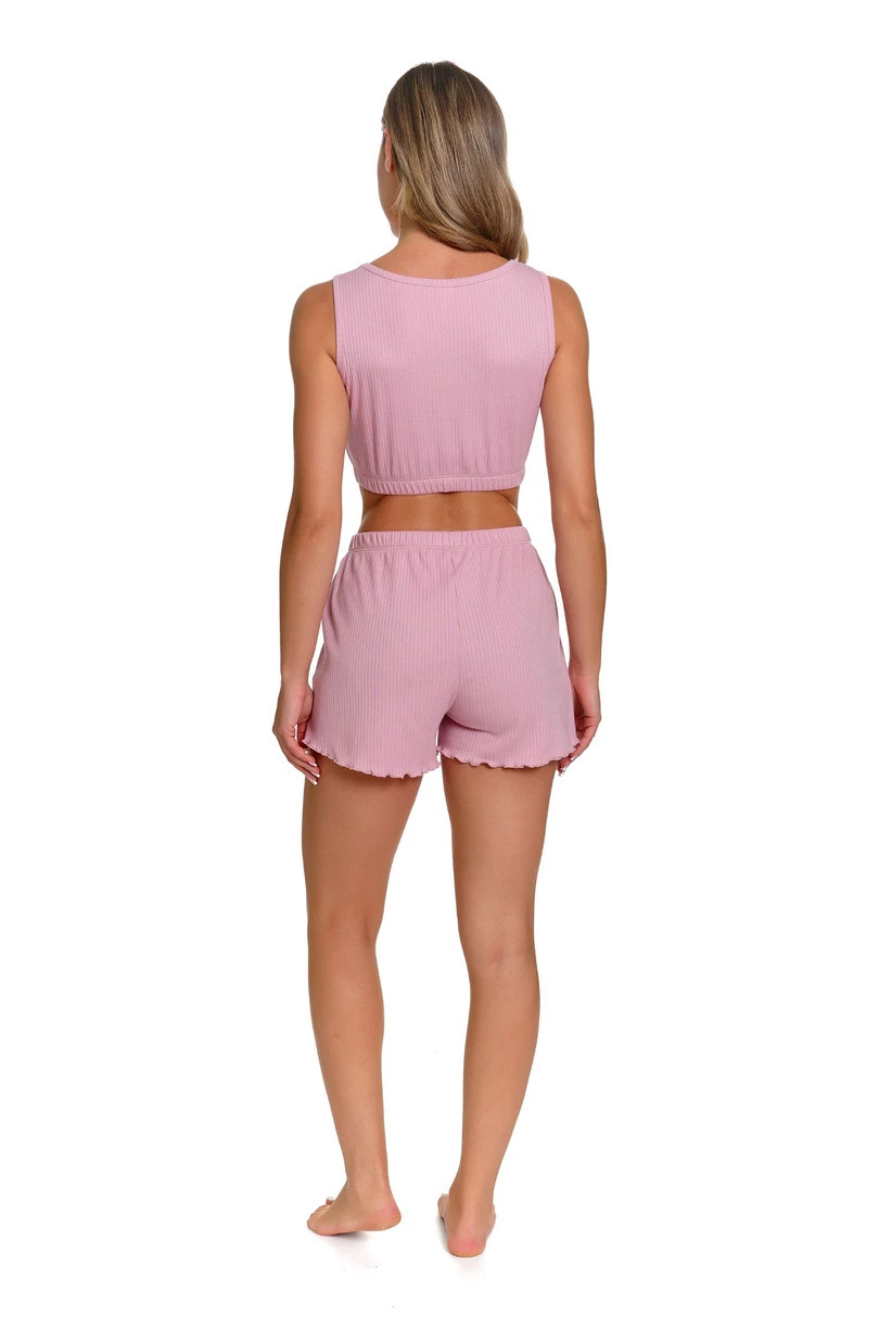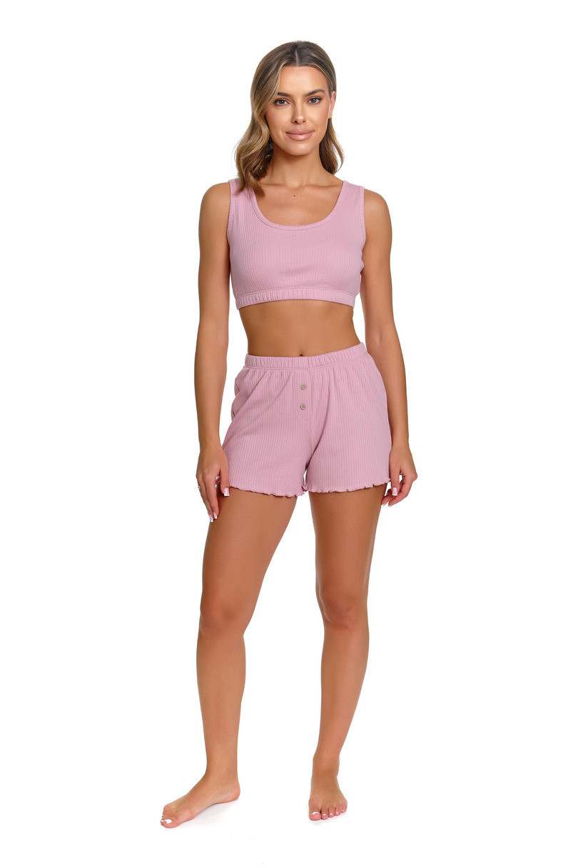 Piżama damska Doctor Nap PM.7464 to lekki, komfortowy komplet top z krótkimi spodenkami, wykonany w 100% z wysokiej jakości bawełny. Naturalny materiał zapewnia doskonałą przewiewność, miękkość oraz delikatność dla skóry, gwarantując wygodę podczas snu i domowego wypoczynku. Model z krótkimi spodenkami idealnie sprawdzi się w cieplejsze dni, oferując swobodę ruchów i optymalny komfort termiczny. Bawełna pozwala skórze oddychać, skutecznie odprowadza nadmiar wilgoci i jest przyjazna nawet dla wrażliwej skóry. Starannie dopracowany krój oraz wysoka jakość wykonania charakterystyczna dla marki Doctor Nap sprawiają, że piżama PM.7464 zachowuje swój kształt i estetyczny wygląd nawet po wielu praniach. To doskonały wybór dla kobiet ceniących naturalne tkaniny, wygodę i ponadczasowy styl.