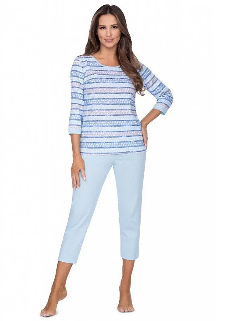 Dámské bavlněné pyžamo s tříčtvrtečním rukávem značky Regina. Pyžamo je vyrobeno z pružné bavlny. Má hlubší výstřih, tříčtvrteční délku nohavic a rukávu.