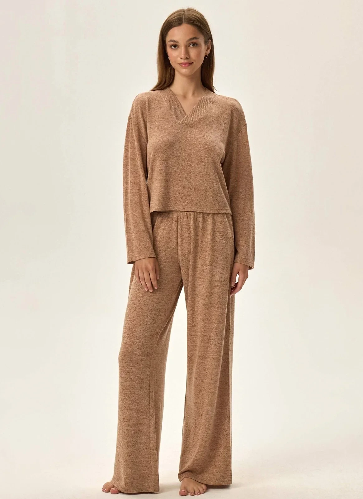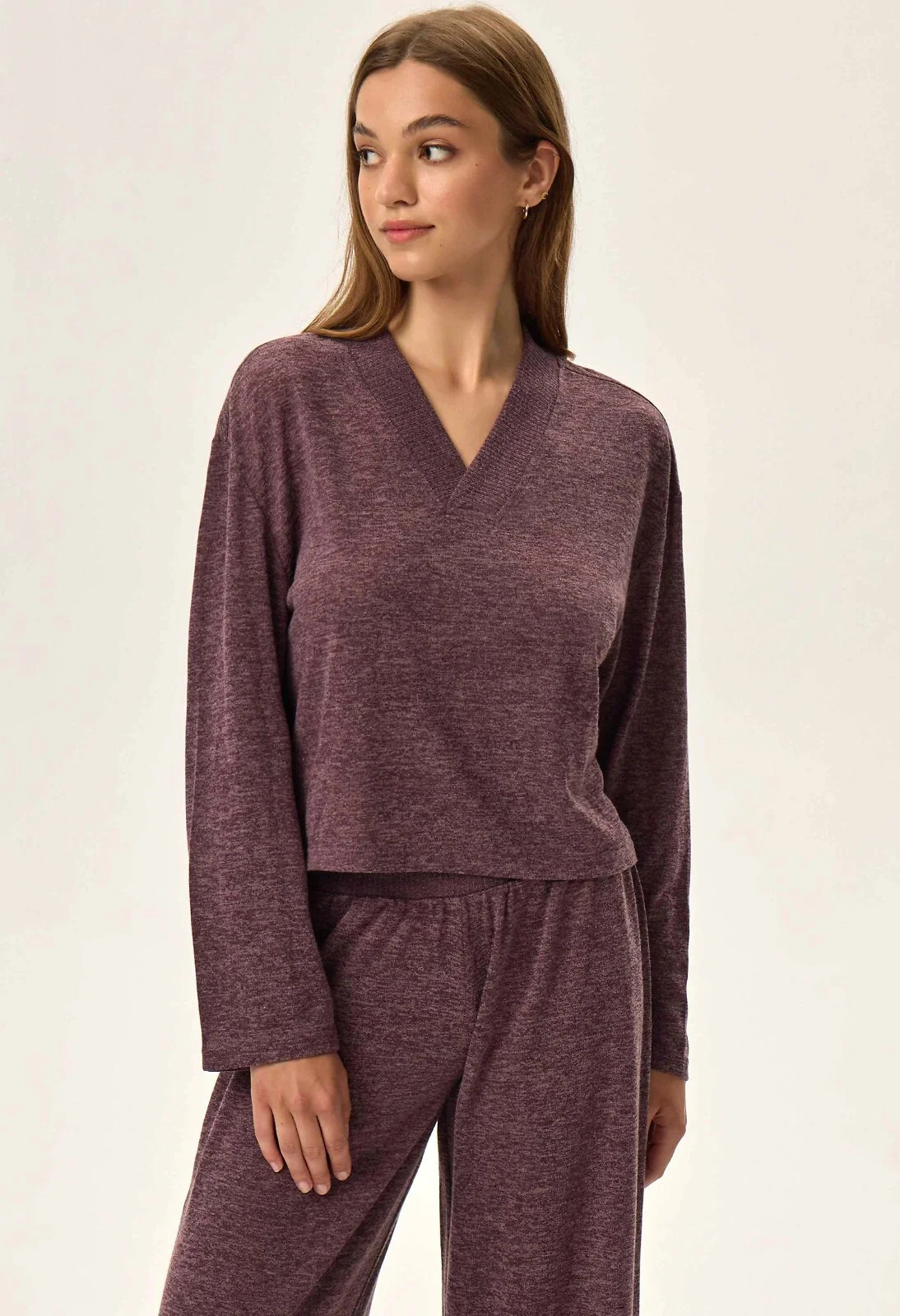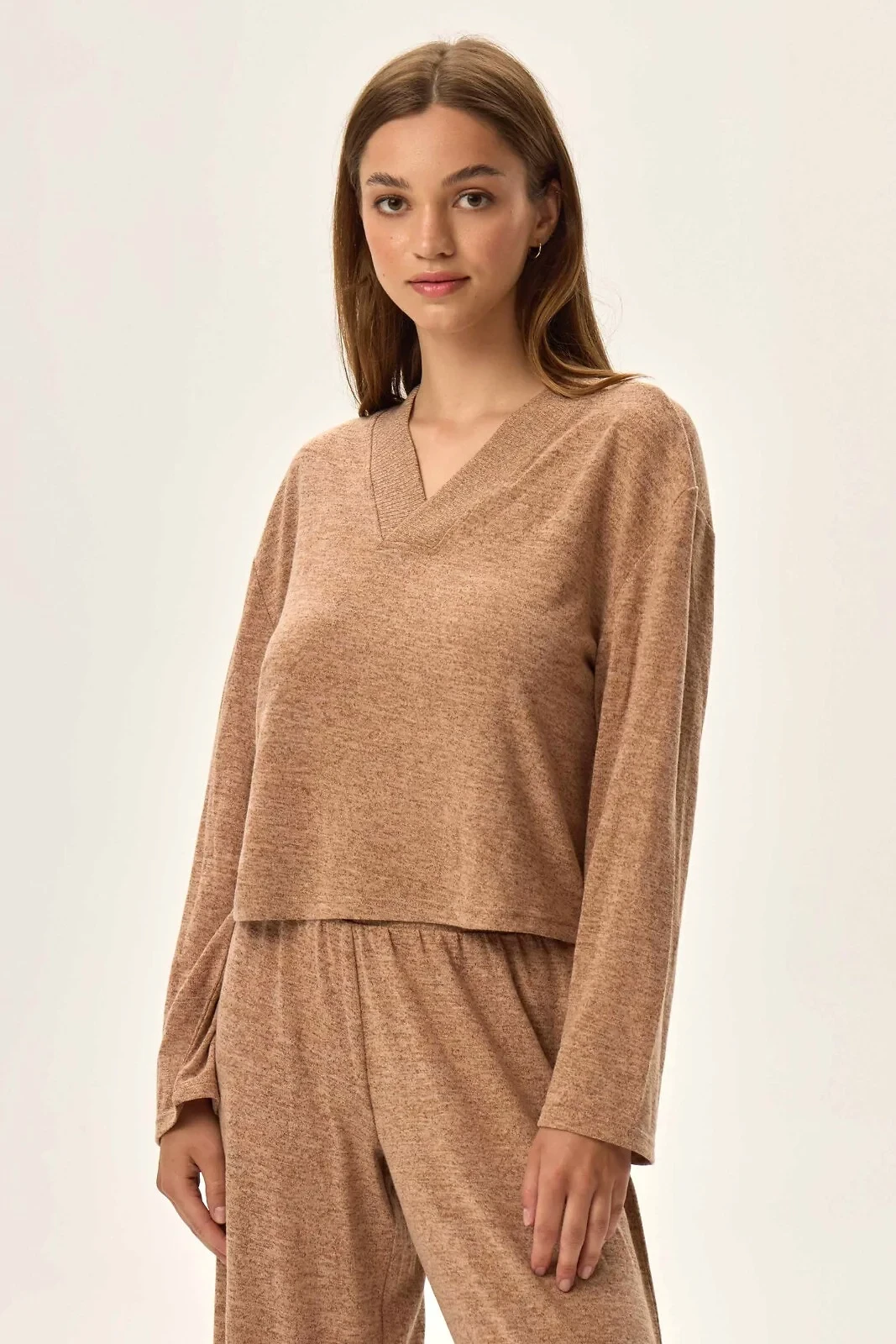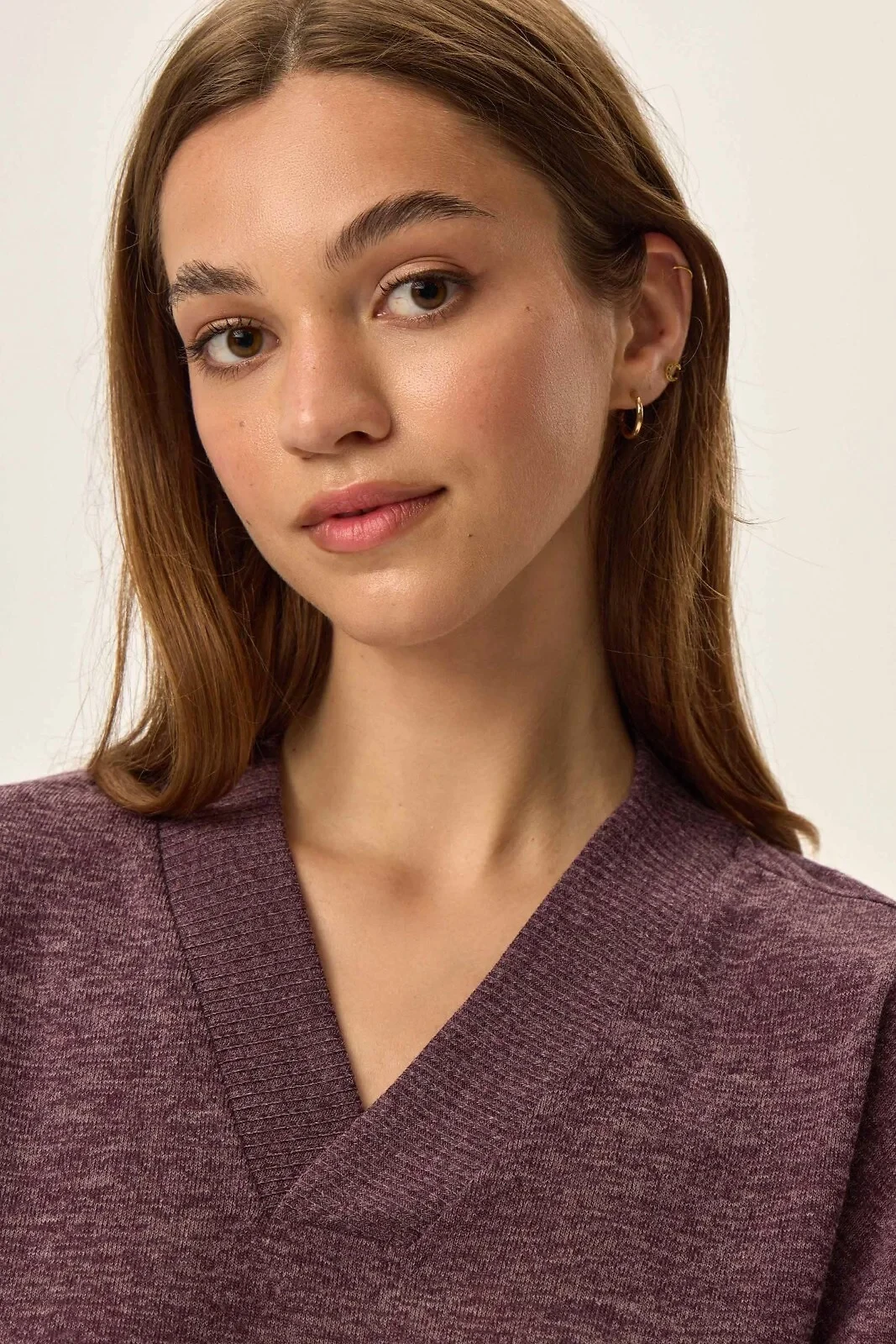 - výstřih ve tvaru V z jemného žebrování