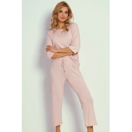 Dámské pyžamo s krátkým rukávem z jemné viskózy s příměsí lnu. Kulatý výstřih. 7/8 dlouhé kalhoty s ozdobným páskem