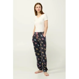 Dámské stylové pyžamové kalhoty s úžasným potiskem pudlů a šňůrkou v pase, které si prostě hned zamilujete! Kalhoty jsou vyrobené z vysoce kvalitní přírodní egejské bavlny, která poskytuje vysoké pohodlí, příjemný pocit na dotek, prodyšnost, pružnost a odolnost.