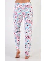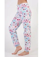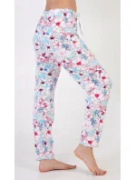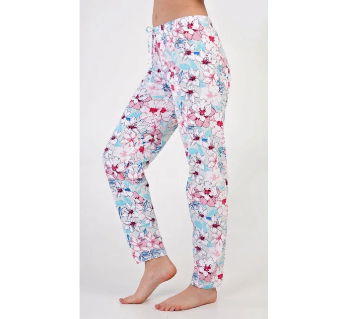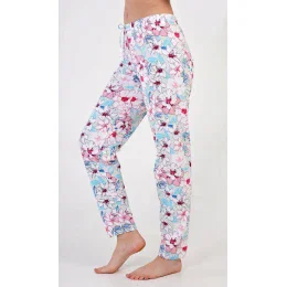 Dámské bavlněné pyžamové kalhoty Ellie. Dámské pyžamové dlouhé kalhoty s květinovým vzorem mají praktickou gumu a šňůrku na stažení v pase. Jsou bez kapes. Použitý materiál je jemný a příjemný na dotek. Kalhoty jsou vhodné i na denní nošení.