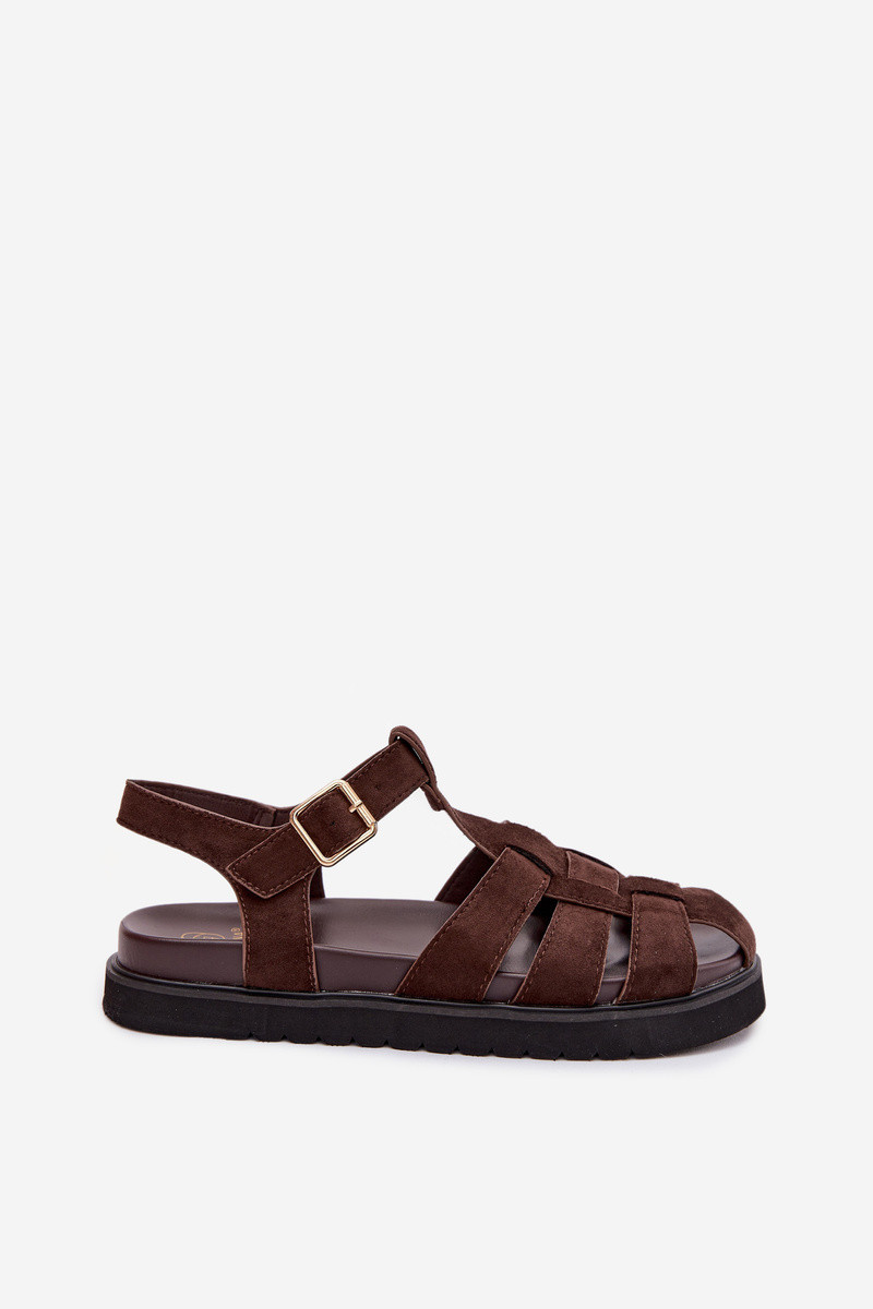 Dámské římské sandály s zlatou sponou na platformě Čokoládová Terelina
