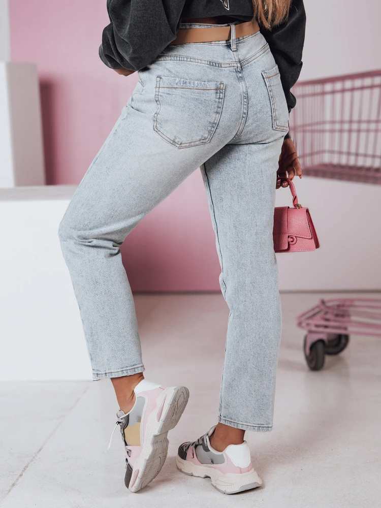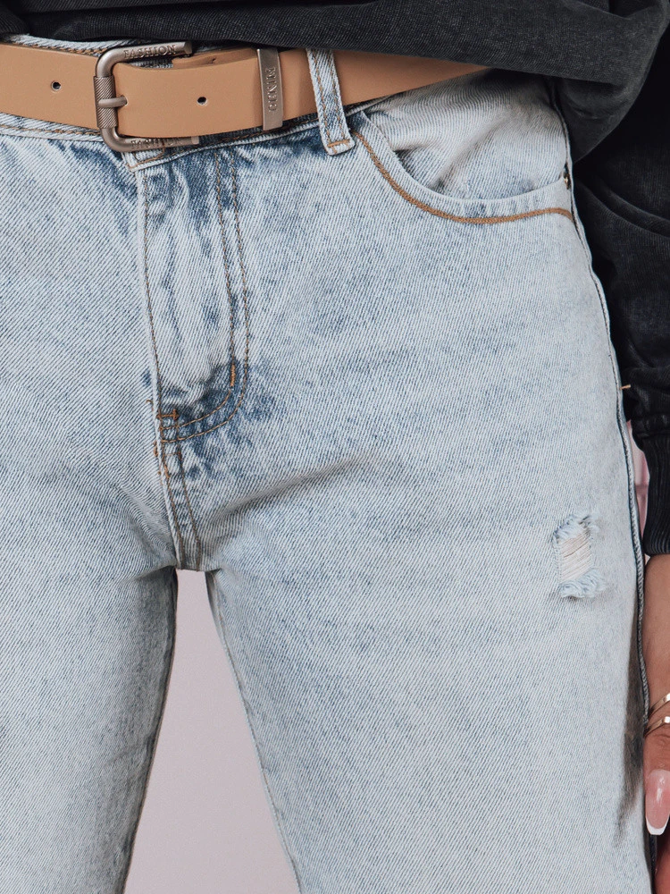Spodnie damskie jeansowe proste średni stan z paskiem BLUEDEN