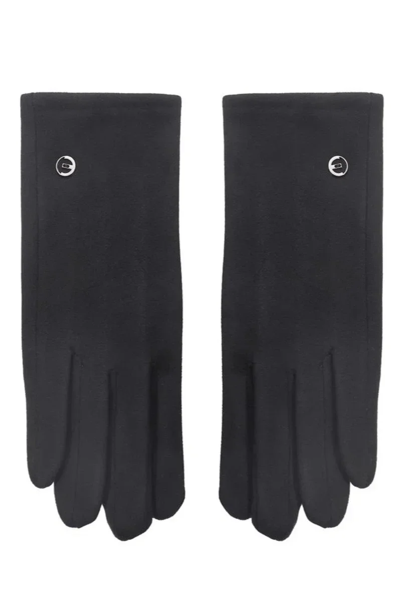 Dámské rukavice s ozdobným knoflíkem. Vyrobené z materiálu připomínajícího semiš s příjemným hřejivým fleecem uvnitř. Ukazováček a palec mají speciální prošití, které umožňuje ovládat telefon bez nutnosti sundat rukavici.