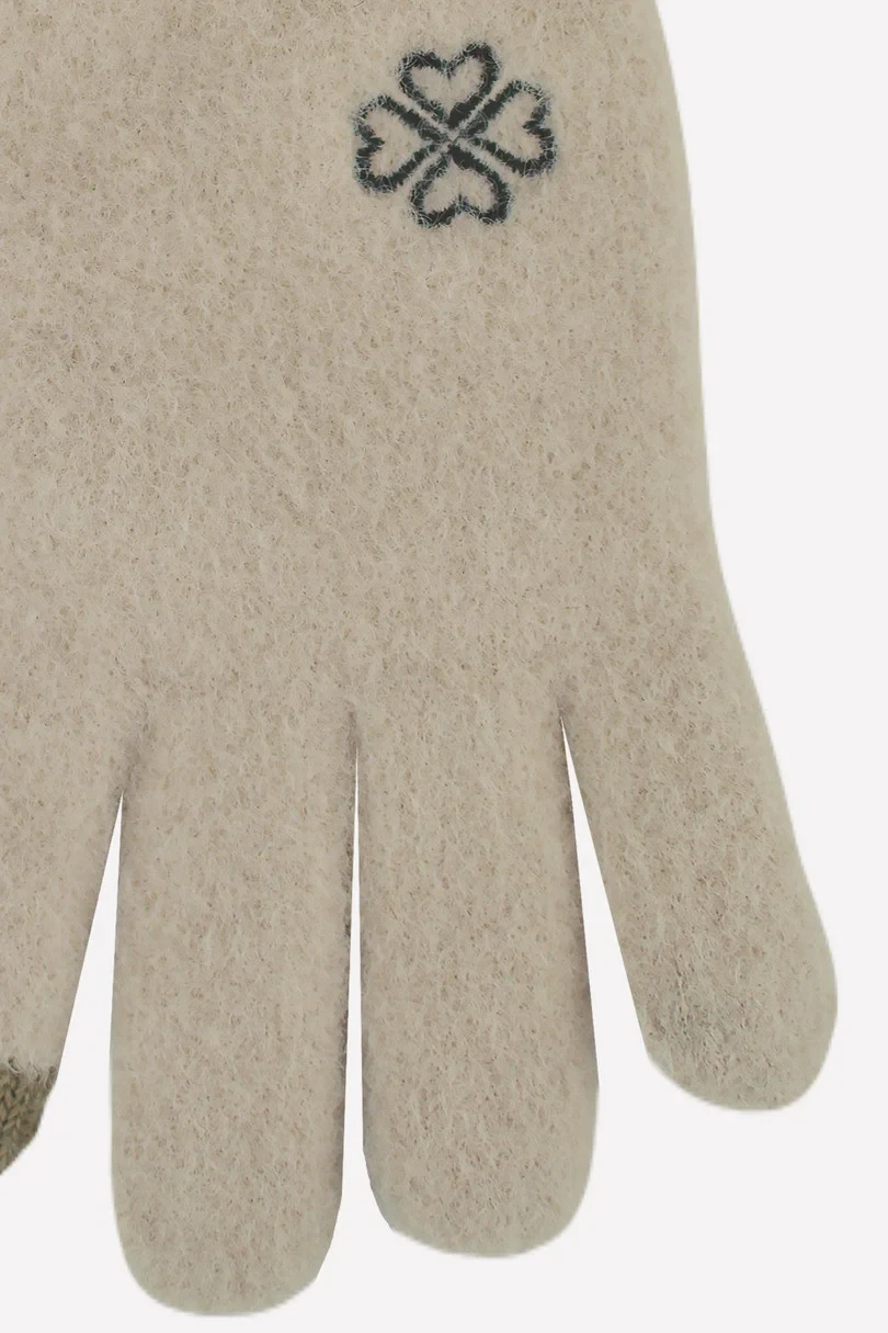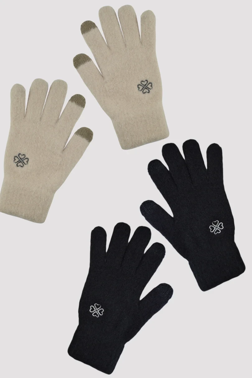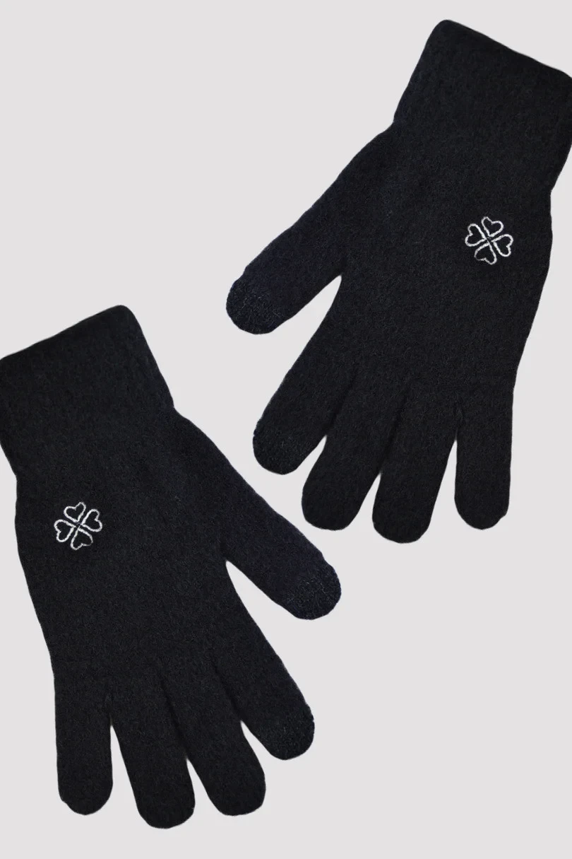 Dámské huňaté rukavice s malou výšivkou. Příjemné na dotek, hřejivé a funkční, se speciální vložkou na prstech umožňující ovládání dotykové obrazovky.