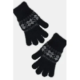 Dámské huňaté rukavice se zimním vzorem. Příjemné na dotek, hřejivé a funkční, se speciální vložkou na prstech umožňující ovládání dotykového displeje.