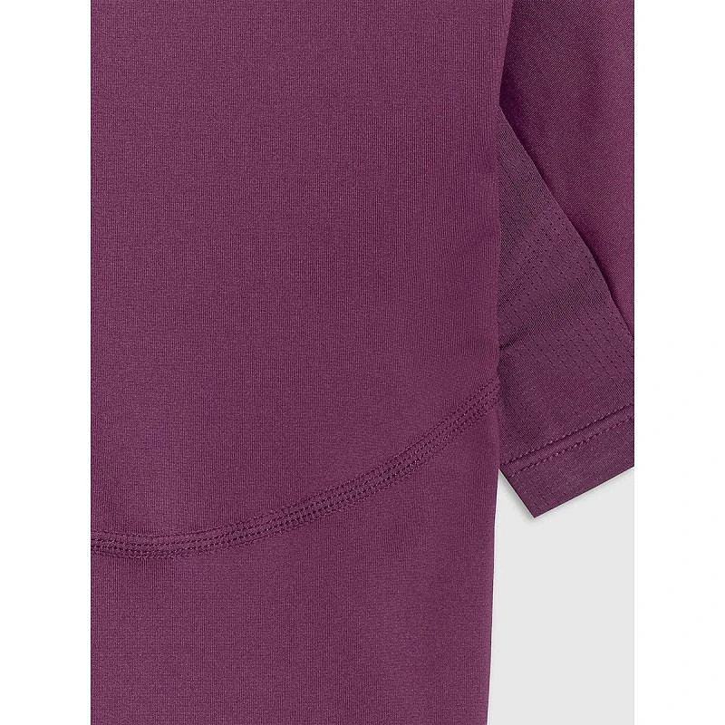 Úzký střih přiléhá k tělu a zvýrazňuje siluetu, zatímco standardní délka přes boky poskytuje pohodlné krytí při pohybu. Interlokový úplet je měkký, oboustranně hladký a odolný proti deformaci, díky čemuž tričko dobře leží na těle a udržuje si svůj tvar.