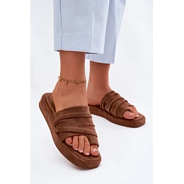 Stylové dámské pantofle vyrobené z měkkého eko semiše jsou ideální volbou na teplé dny, spojující pohodlí s módním vzhledem. Model na jemné platformě zajišťuje lehkost a komfort při chůzi a zároveň elegantně zvýrazňuje siluetu. Vypasovaný pásek tvoří efektní dekorativní prvek, který přitahuje pozornost a dodává výjimečný charakter. Ideální volba na každý den, pro procházky nebo letní výlety – pro ženy, které ocení styl a pohodlí v jednom. Při výběru velikosti se řiďte tabulkou velikostí.