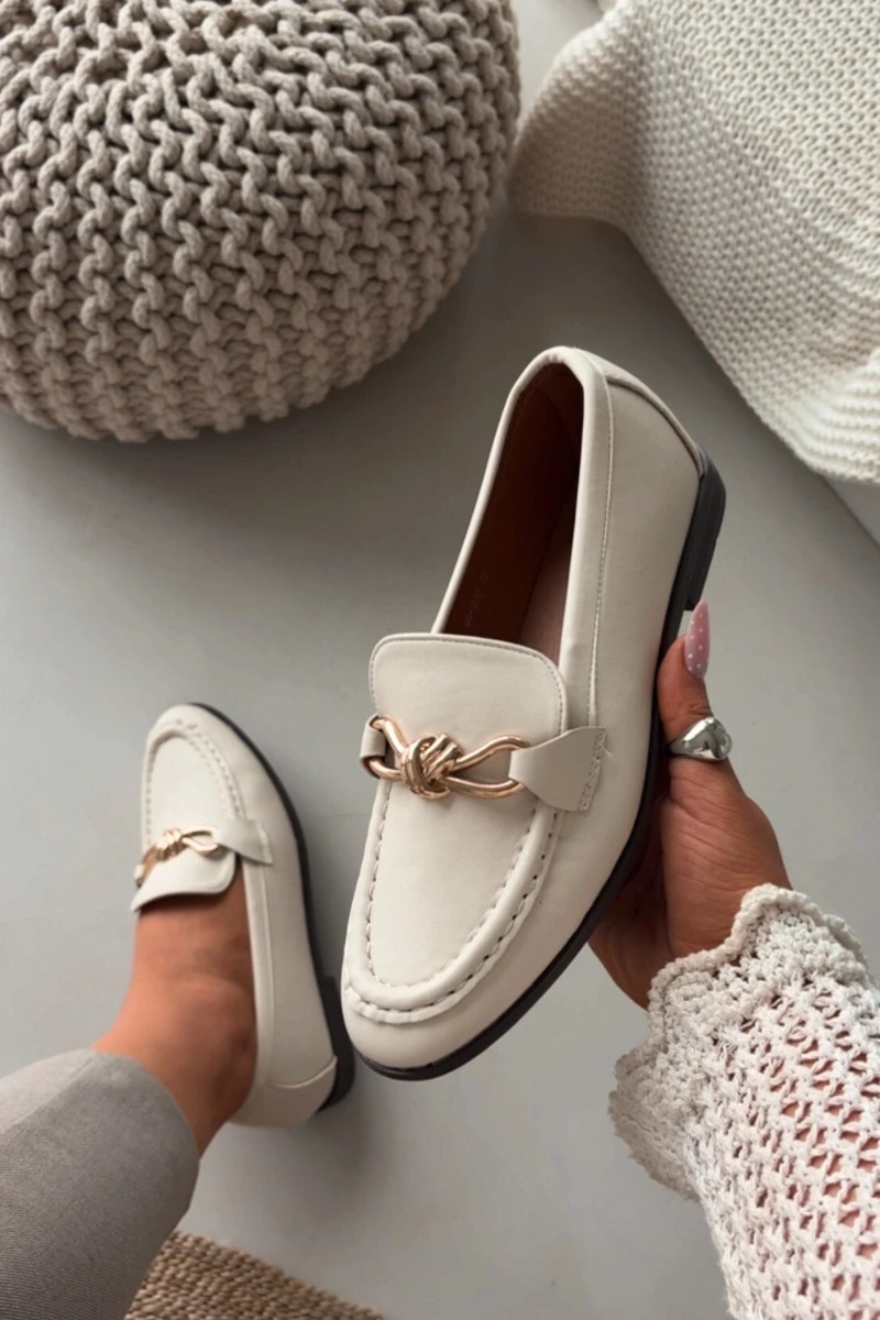 Světle béžové loafersy se skvěle hodí k neutrálním barvám – zkombinujte je s bílou košilí, krémovými kalhotami nebo lehkým svetrem pro sofistikovaný, ale pohodlný look.