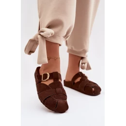 Dámské s pásky a zlatým přezkou Čokoládové model 21951397 - Boto