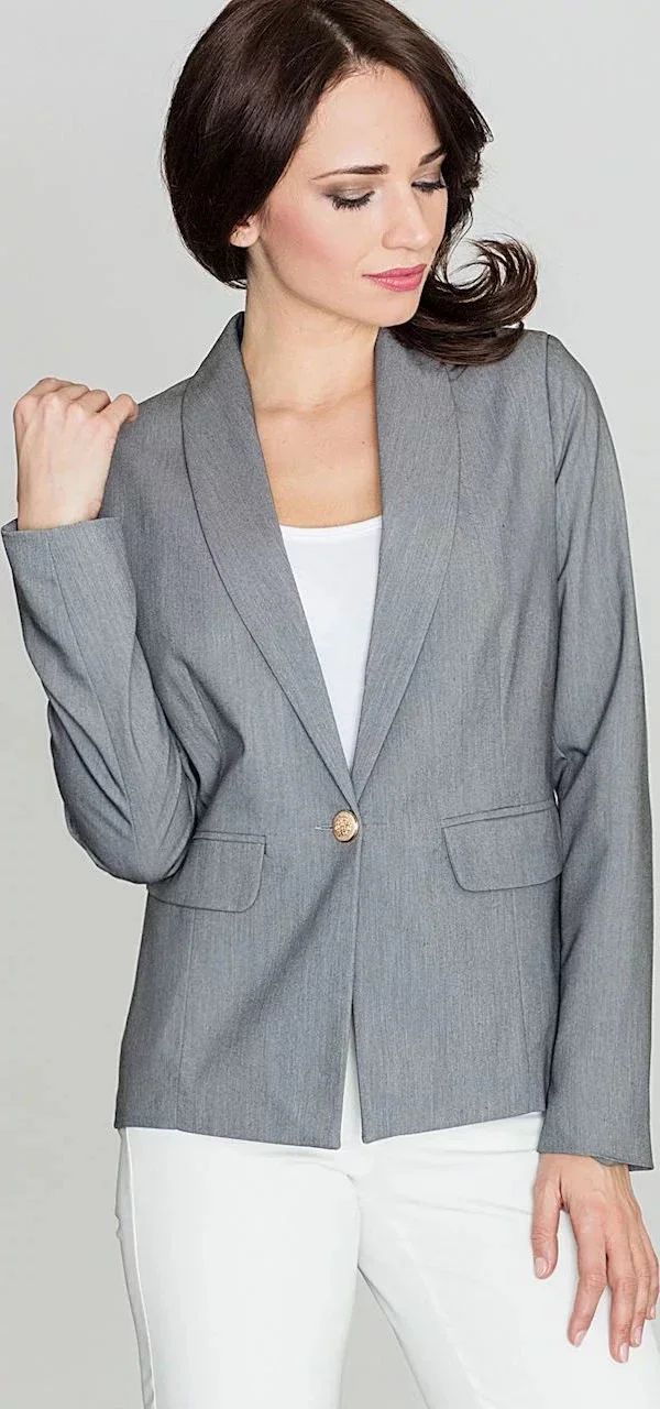 Módní dámské sako se zapíná na jeden knoflík - perfektní střih, opticky zeštíhluje postavu.