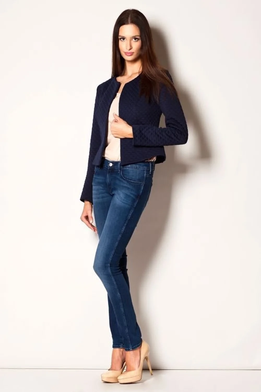 Velmi módní bunda M218 FIGL je vyroben z prošívaného materiálu. Design je jednoduchý bez límce. Ideální volba do kombinace s kalhotami nebo sukní zejména do chladného počasí. K objednání v béžové, černé , tmavě modré, růžové a krémové barvě.