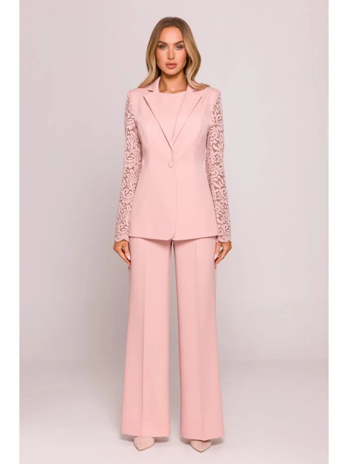 Dámské sako s krajkovými rukávy M865 Pudr růžová - MOE