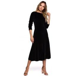 Produkt Dámské sametové midi šaty s volánkovými rukávy M557 černé - Moe prodáváme v těchto velikostech: S, XXLa barvách černá5903887602495, 5903887602518