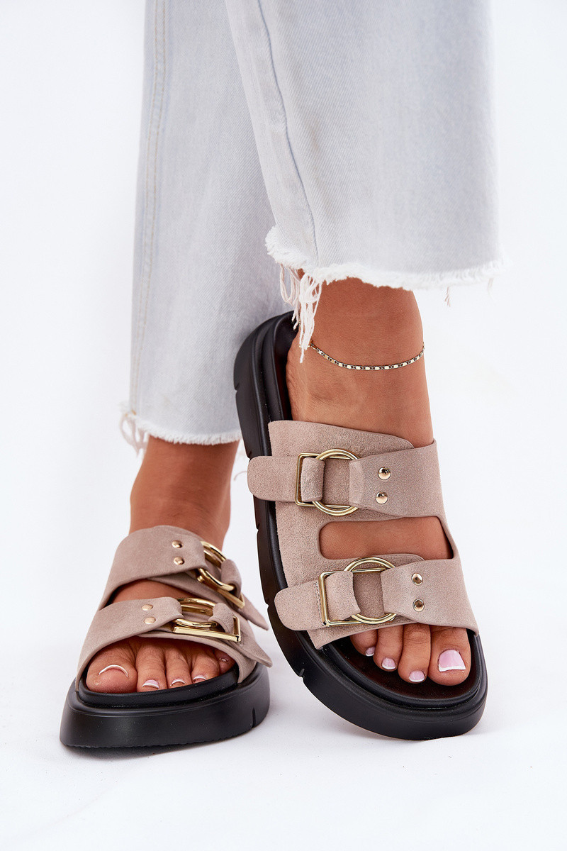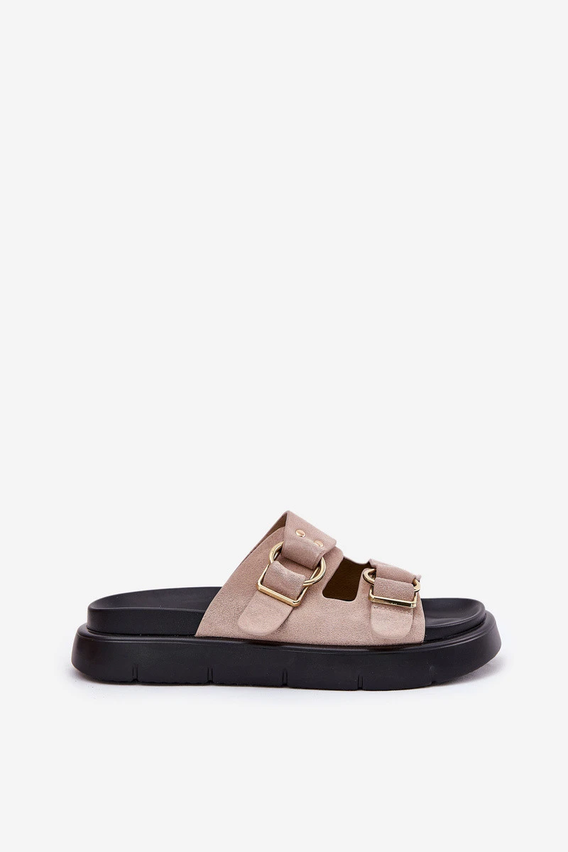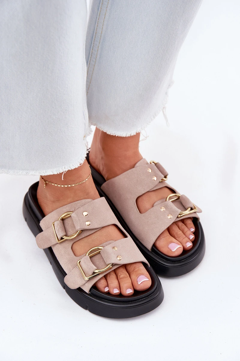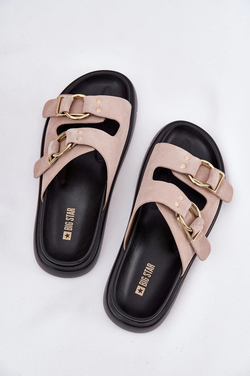 Dámské pantofle značky Big Star, vyrobené z vysoce kvalitní přírodní nubukové kůže, jsou vynikající volbou pro teplé dny. Umístěny na platformě, zajišťují pohodlí a stabilitu po celý den. Tento model se vyznačuje dvěma pásky zdobenými sponami, které jim dodávají moderní charakter. Stylové a elegantní, tyto pantofle budou skvělým doplňkem letních stylizací, spojující pohodlí s módním vzhledem. Při výběru velikosti se řiďte tabulkou velikostí.