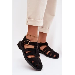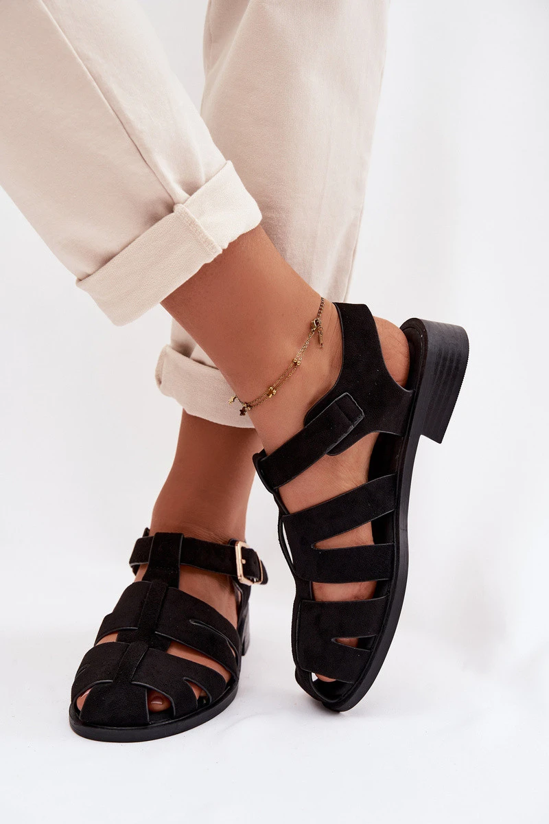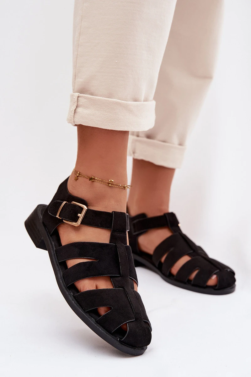 Dámské Sandály Černé se Zlatým Přezkou model 21937621 - Boto