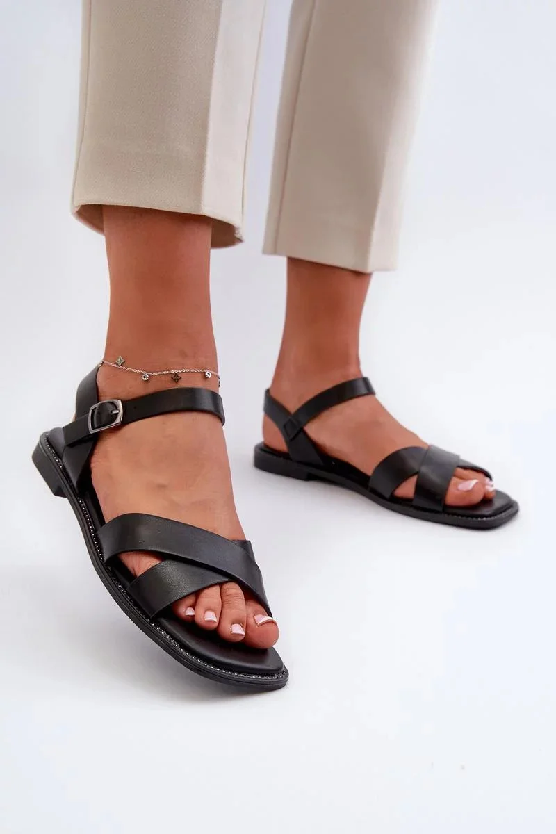 Dámské sandály z kvalitní ekokůže, ideální pro teplé dny. V přední části jsou dva proplétající se pásky, které dodávají originální a módní vzhled. Nastavitelné zapínání řemínků pomocí přezky zajišťuje dokonalé přizpůsobení noze. Ideální na letní procházky, setkání s přáteli nebo každodenní vycházky.