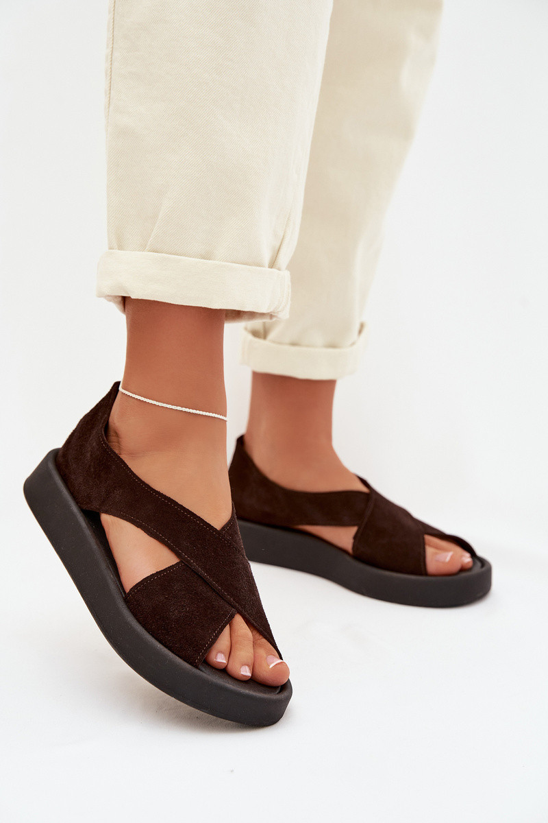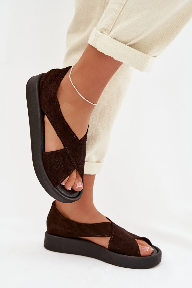 Dámské sandály model 22027710 z přírodního semiše Čokoládové - Zazoo