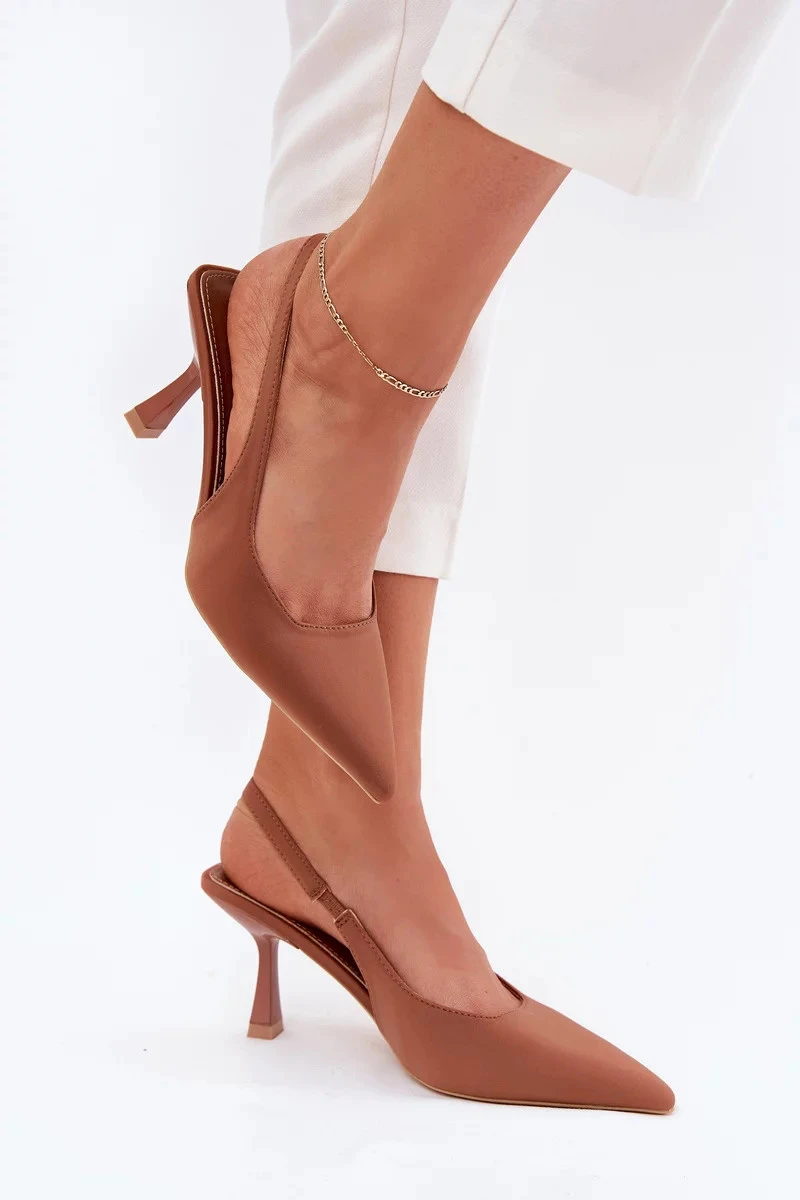 Dámské sandály na jehlovém podpatku Lunira – camel