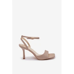 Elegantní dámské sandály Brisora v zlatém provedení s jemným brokatem. Jehlový podpatek dodává ženský a sofistikovaný vzhled, otevřená špička a pásek kolem kotníku s přezkou zajišťují pohodlné a bezpečné nošení. Ideální volba pro slavnostní, společenské i večerní příležitosti.