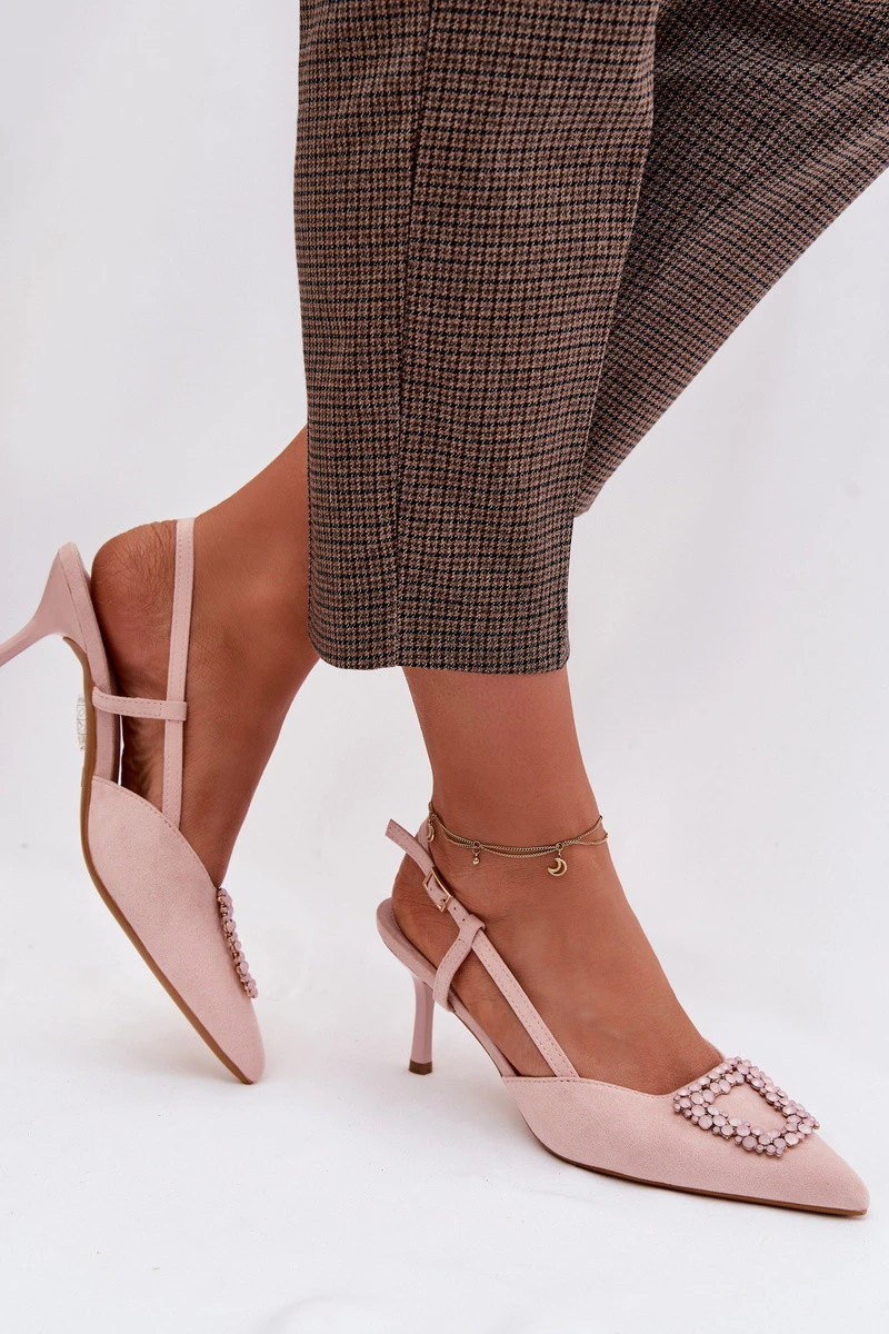 Elegantní dámské sandály z eko semiše jsou stylovou volbou na výjimečné příležitosti. Tenký podpatek typu jehla a špičaté špičky krásně zeštíhlují postavu a dodávají celkovému vzhledu ženský charakter. Dekorativní detail vpředu přitahuje pozornost a zdůrazňuje elegantní vzhled modelu. Nastavitelný pásek s přezkou umožňuje dokonalé přizpůsobení sandálů noze, zajišťující pohodlí při nošení. Tyto sandály se skvěle hodí na večírky, oslavy a večerní vycházky. Při výběru velikosti se řiďte tabulkou velikostí.