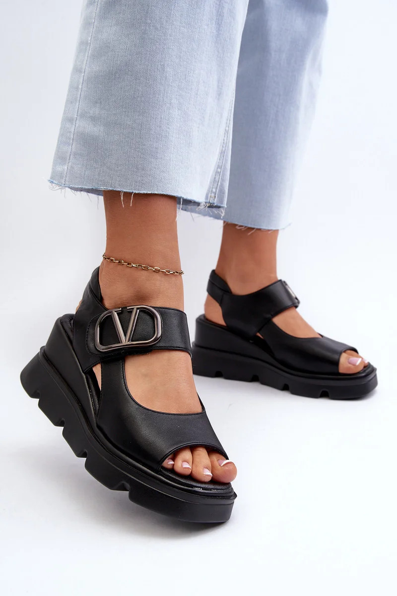 Přidání recenze k Dámské sandály na klínku a platformě z eko kůže, černá triaola